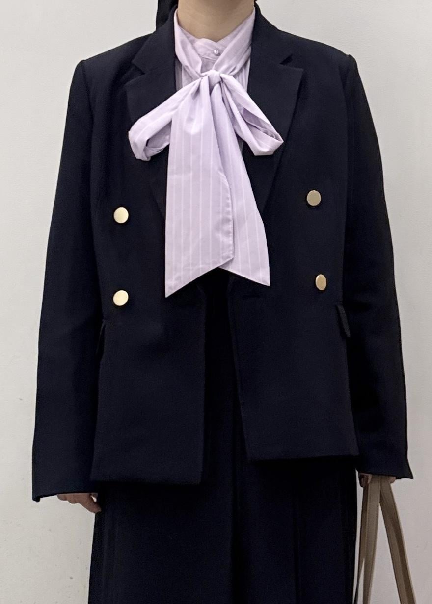 リボンタイは取り外し可能なので、雰囲気を変えて着回しできる万能アイテムです。 -