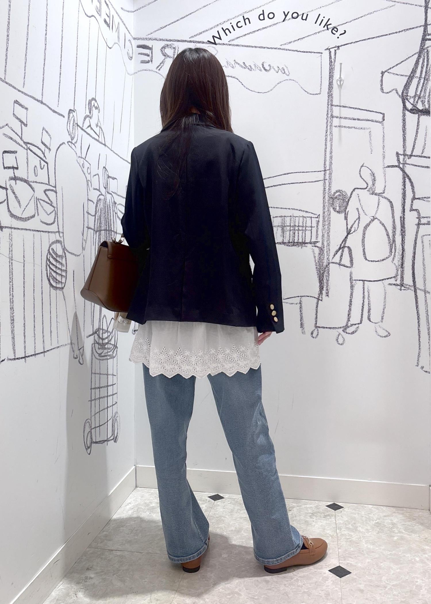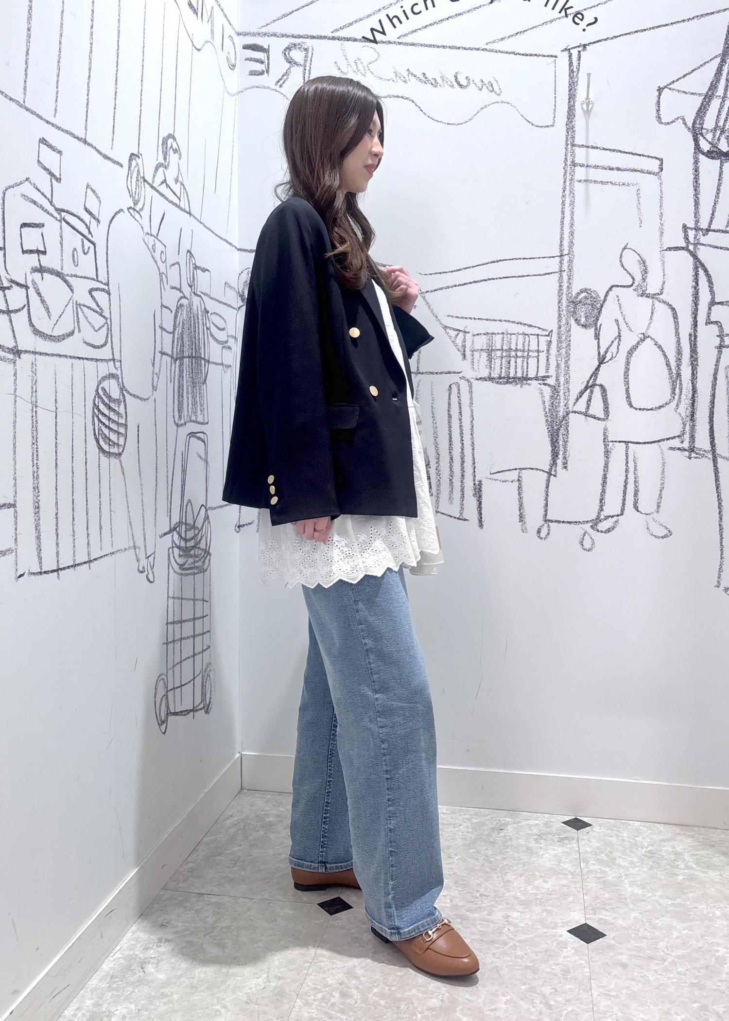 金ボタンがアクセントになり、キレイめにもカジュアルコーディネートにも着回しできるアイテムです。