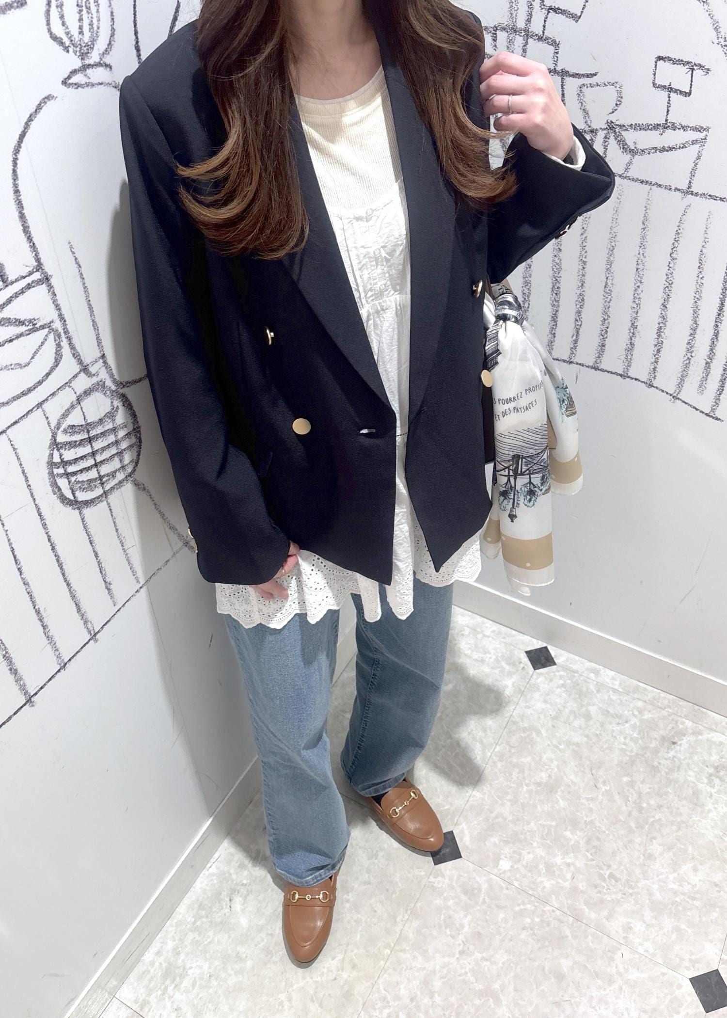 ジャケットのデニムカジュアルコーデ