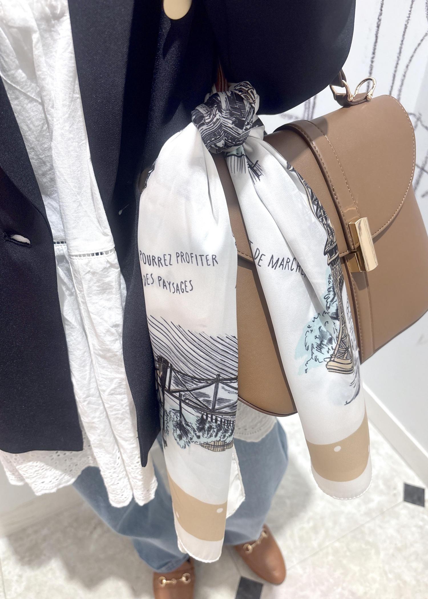 ROPÉ PICNIC PASSAGEシティーパターンスカーフ 90cmベージュ / F¥3,289レビューバックに付けたり、ボトムスのウエストに巻いたりとコーディネートのアクセントになります。