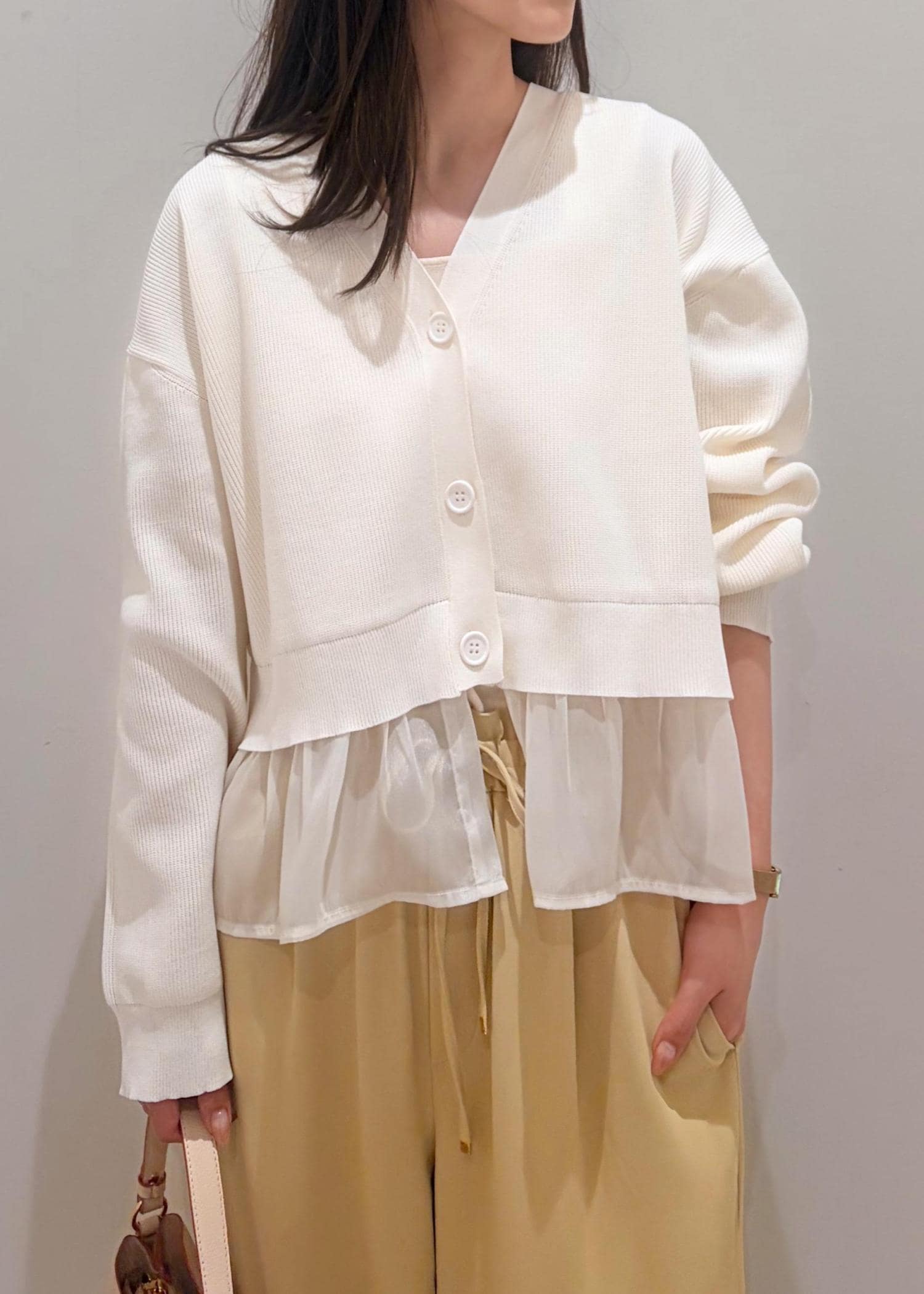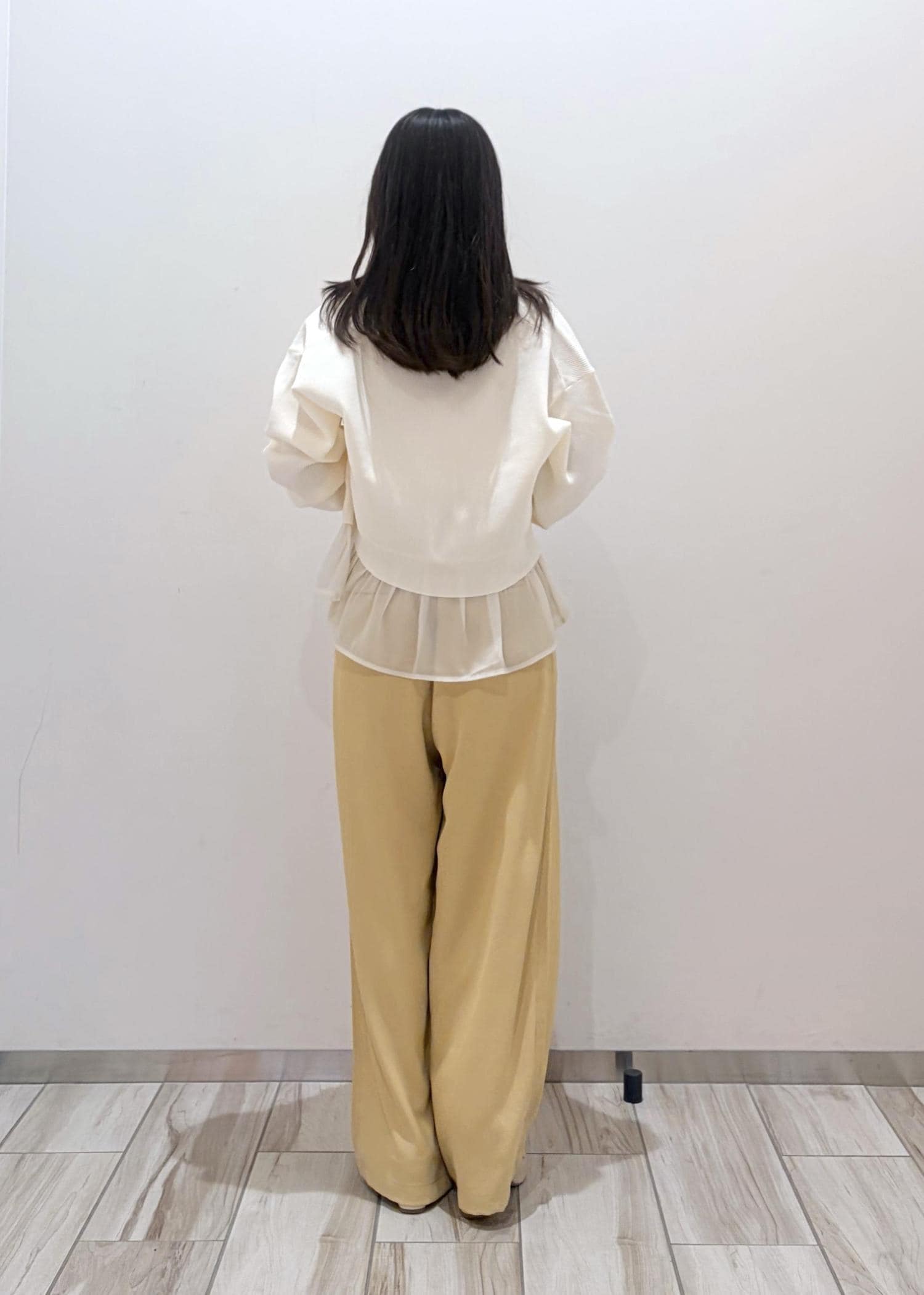 チュール部分がお尻にかかる長さなで、安心感ある着丈です。タポッと感のあるシルエットがとても可愛いく、顔周りもVネックですっきりしているのでお顔映えも叶います◎
