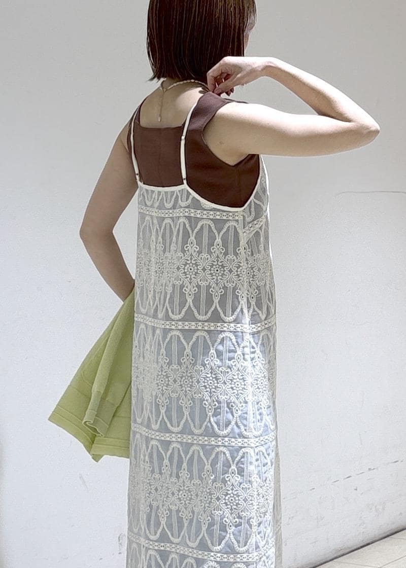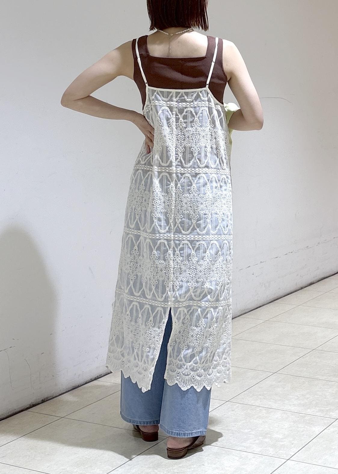 レースキャミワンピのレイヤードコーデ