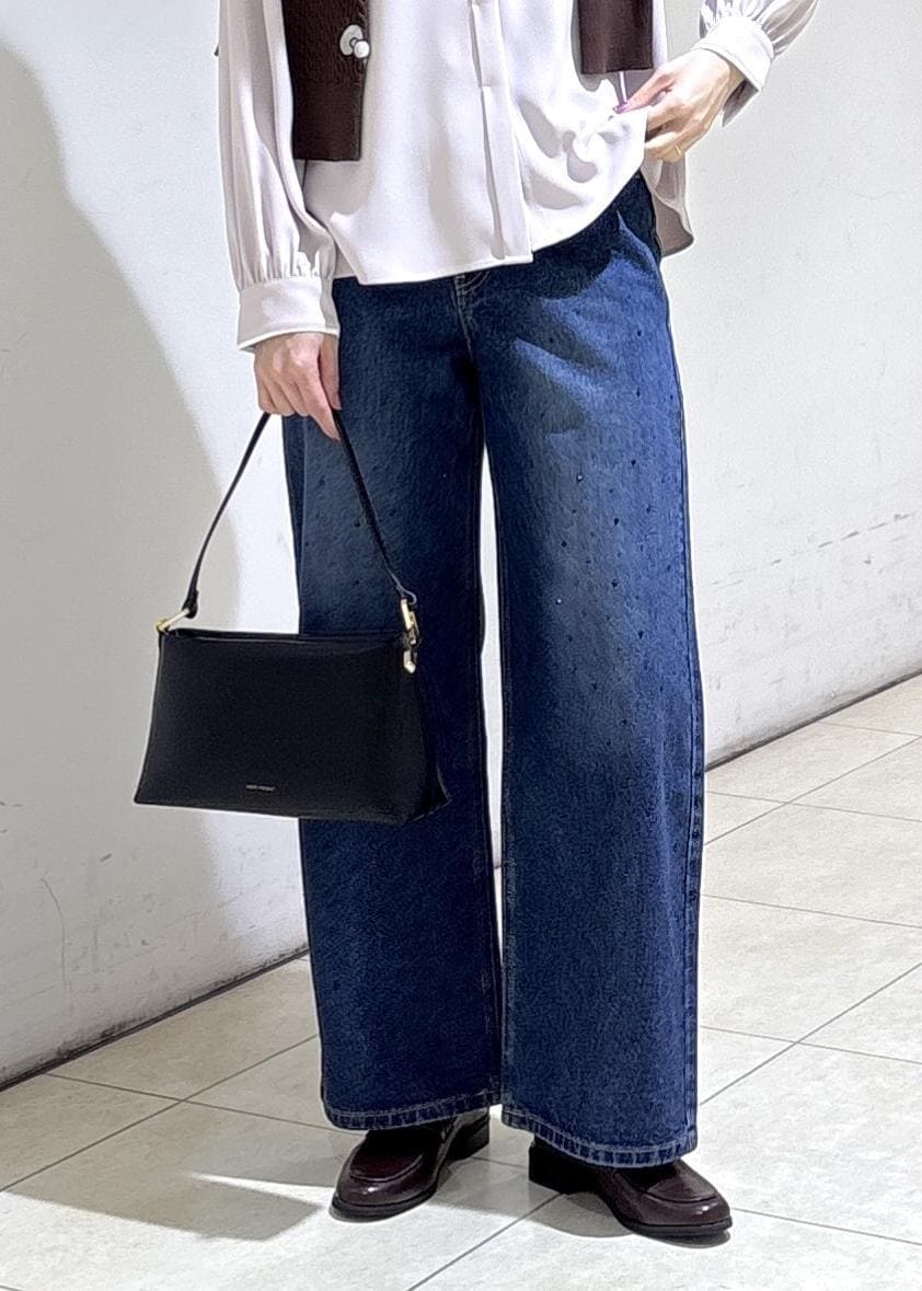 ビジューデニムを合わせたきれいめカジュアルコーデ。