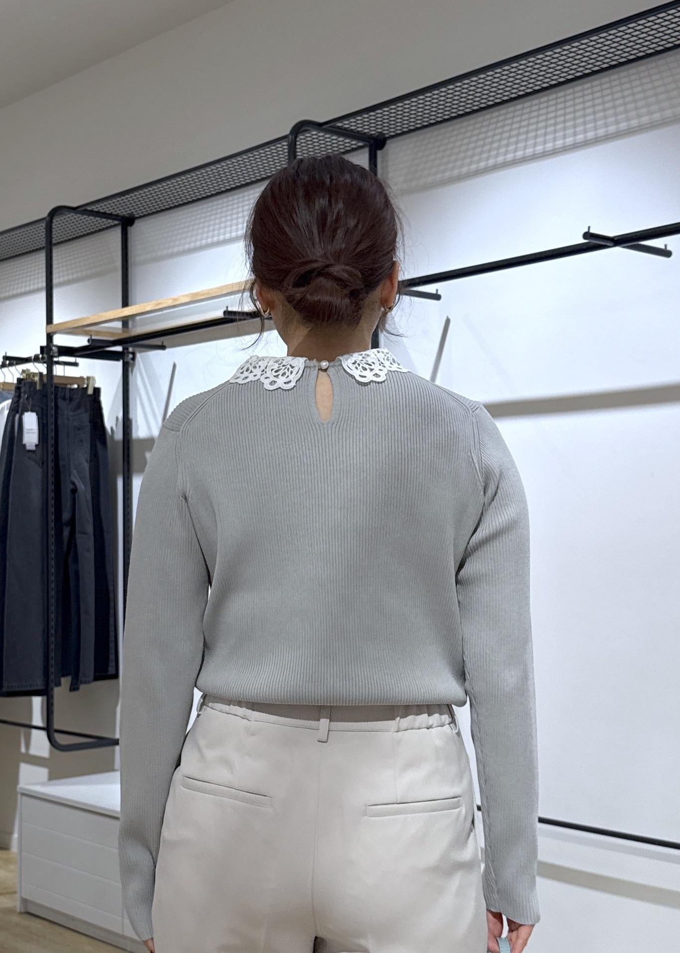 トレンドのレースカラーニットで