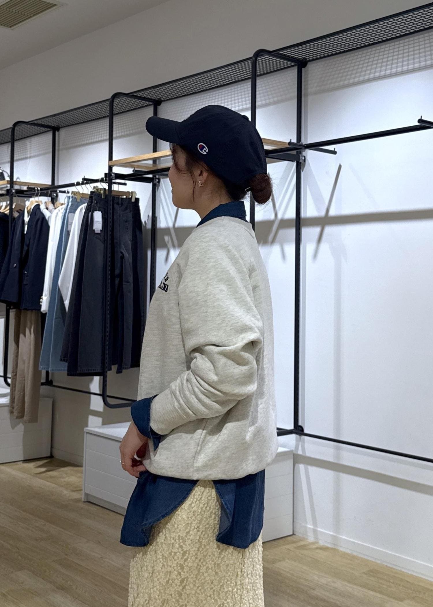 ほぼオールシーズン着用しやすい生地感で、レイヤードから羽織まで幅広く着回しもできます◎ -