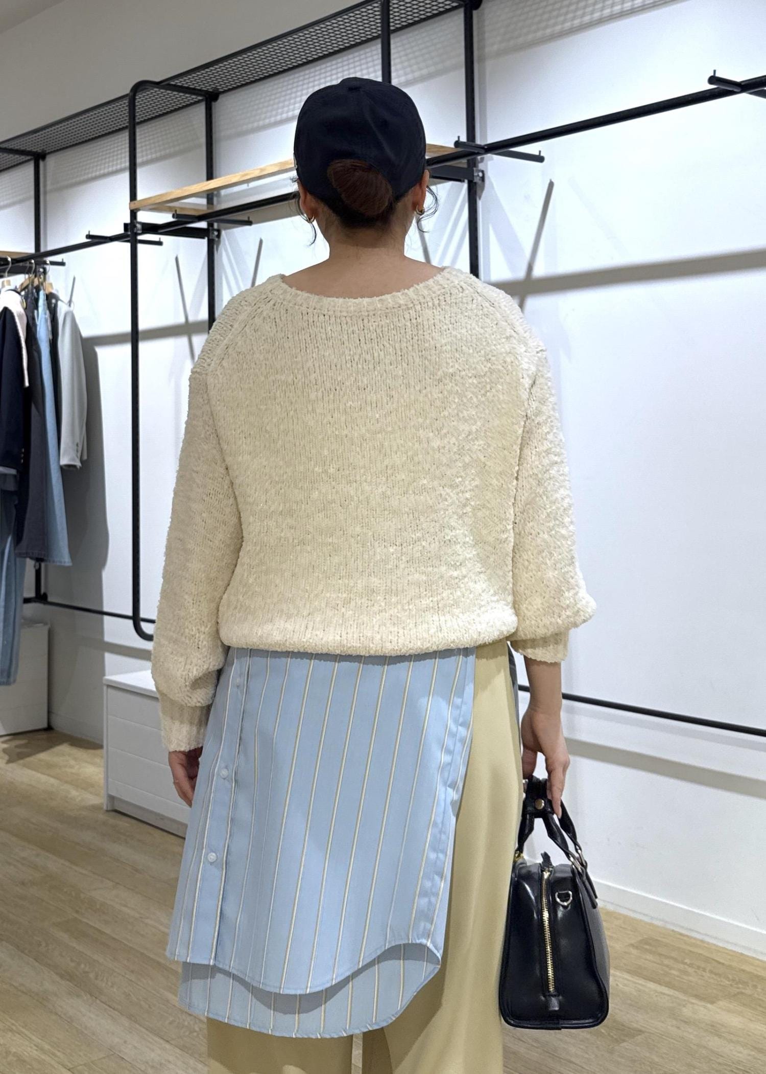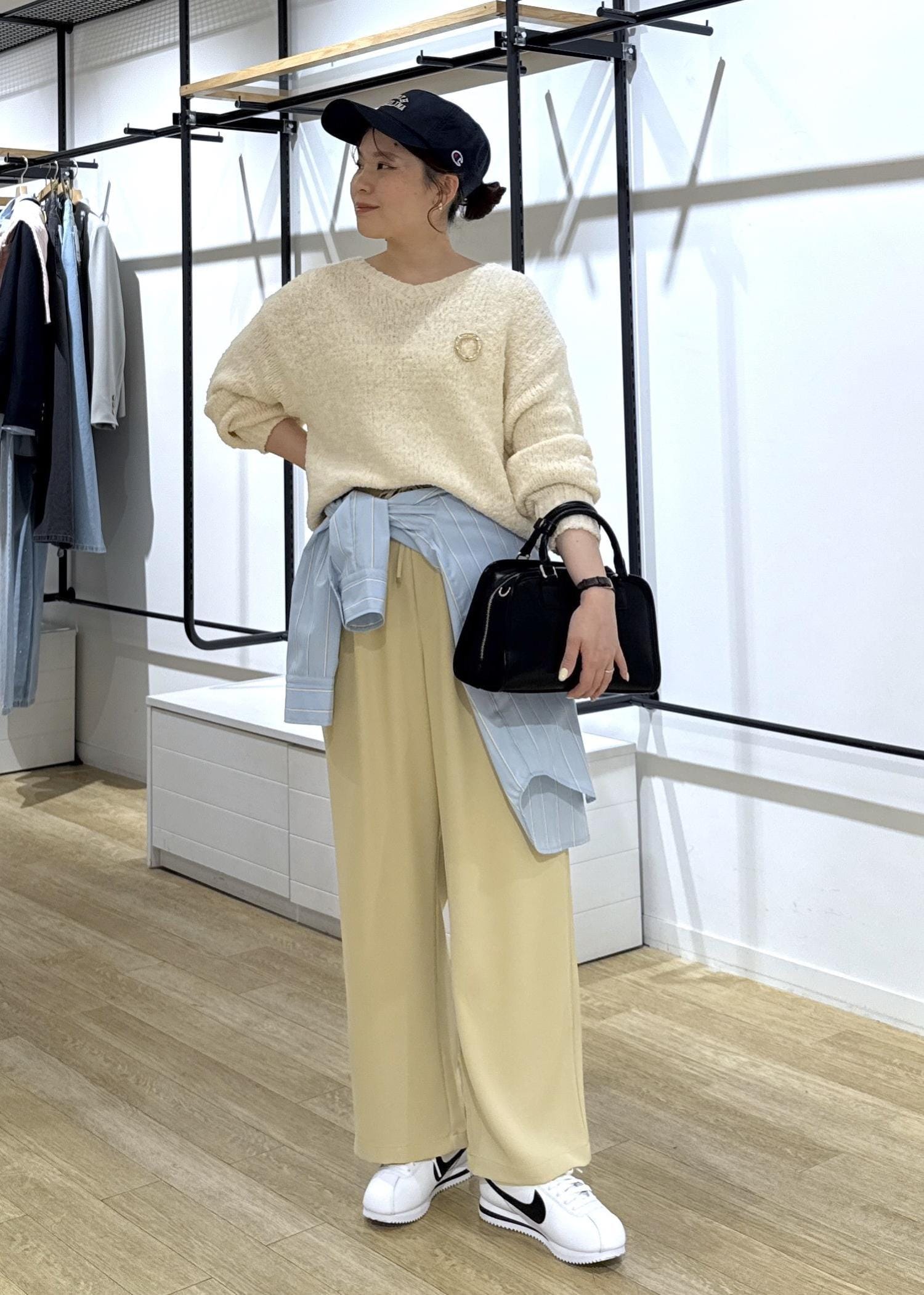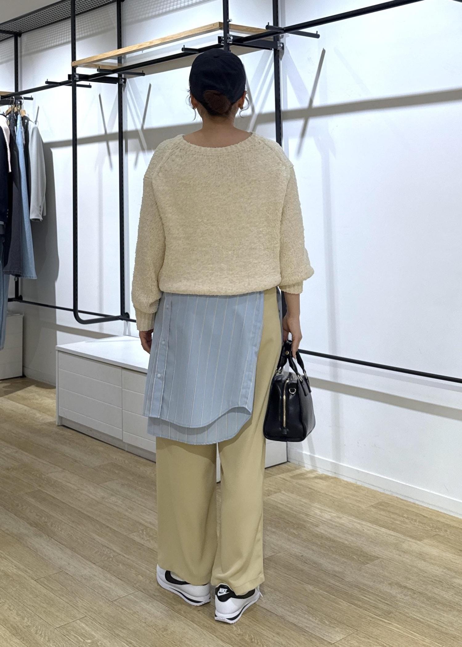 トップスはニットで合わせているので今すぐ使える春服コーデです◎