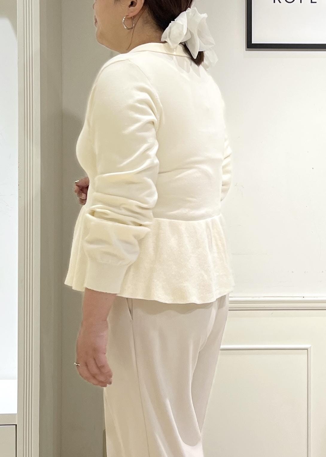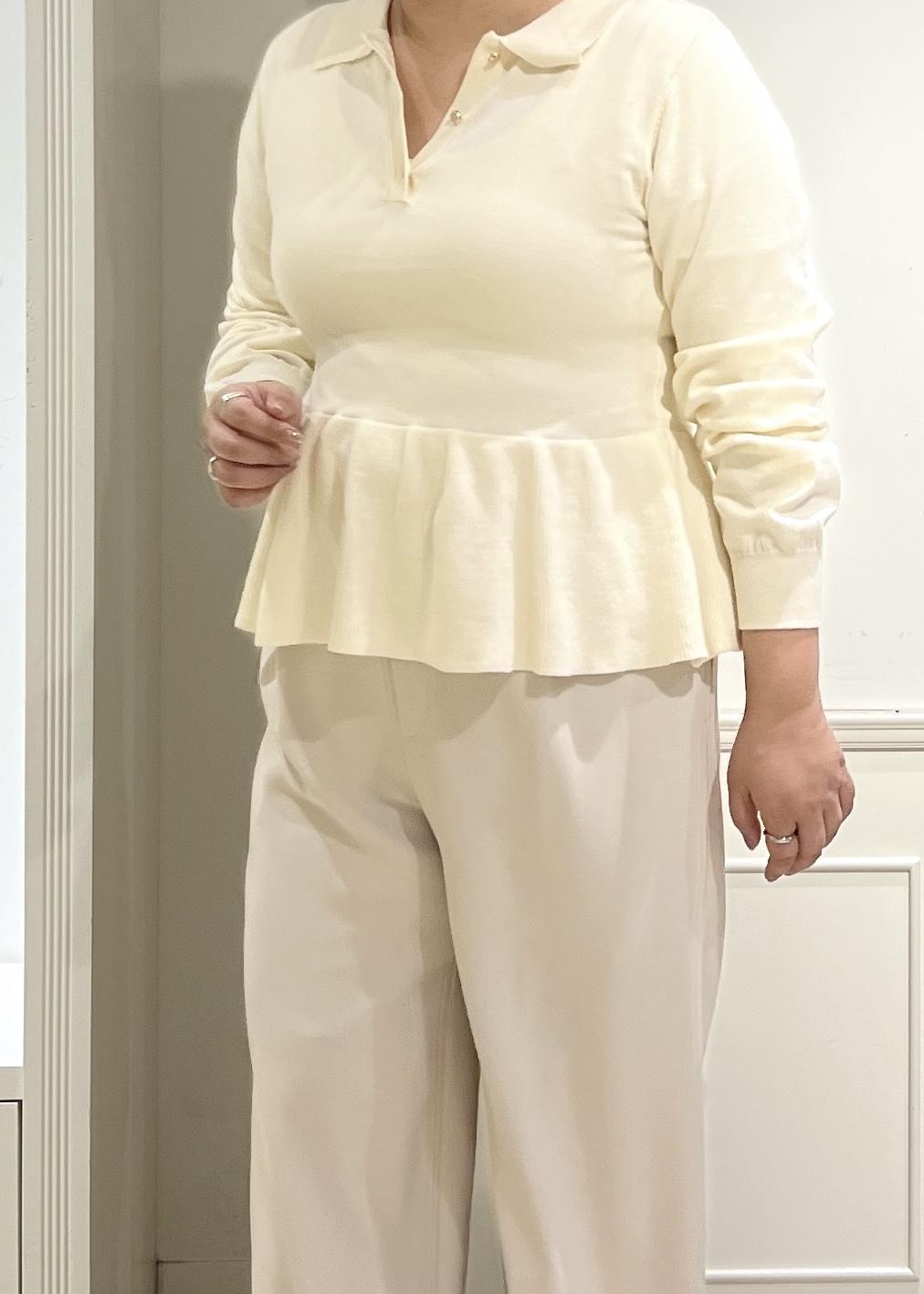 ROPÉ PICNICペプラムポロカラーニットオフホワイト / F¥5,489レビュー柔らかいニットの肌触りが心地よく意外にゆったりしているので、普段Lサイズの私も着用できました。