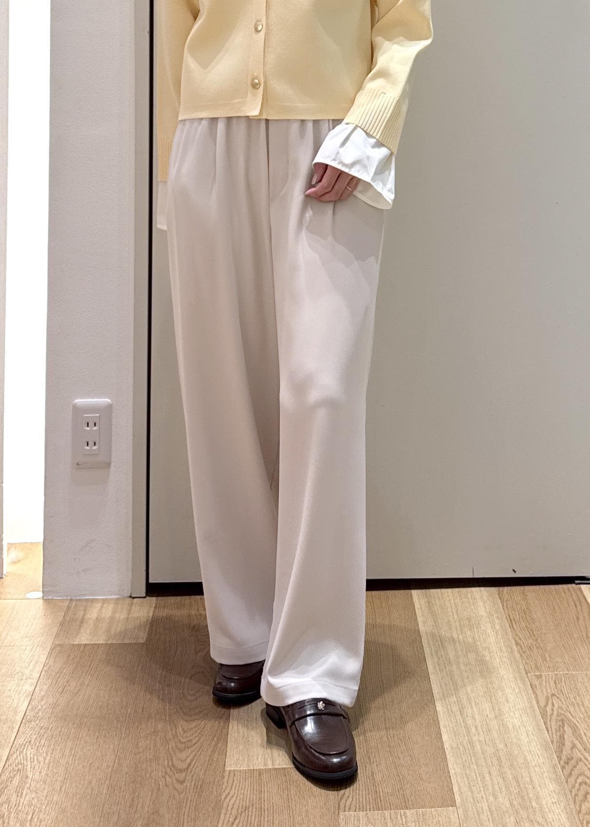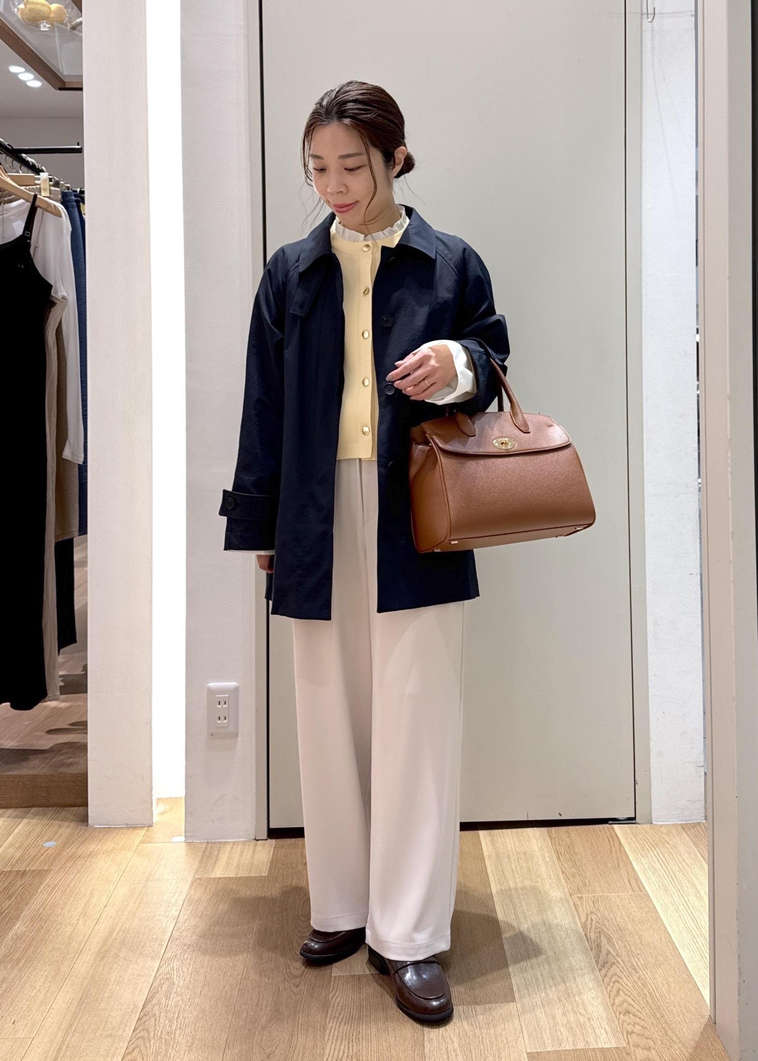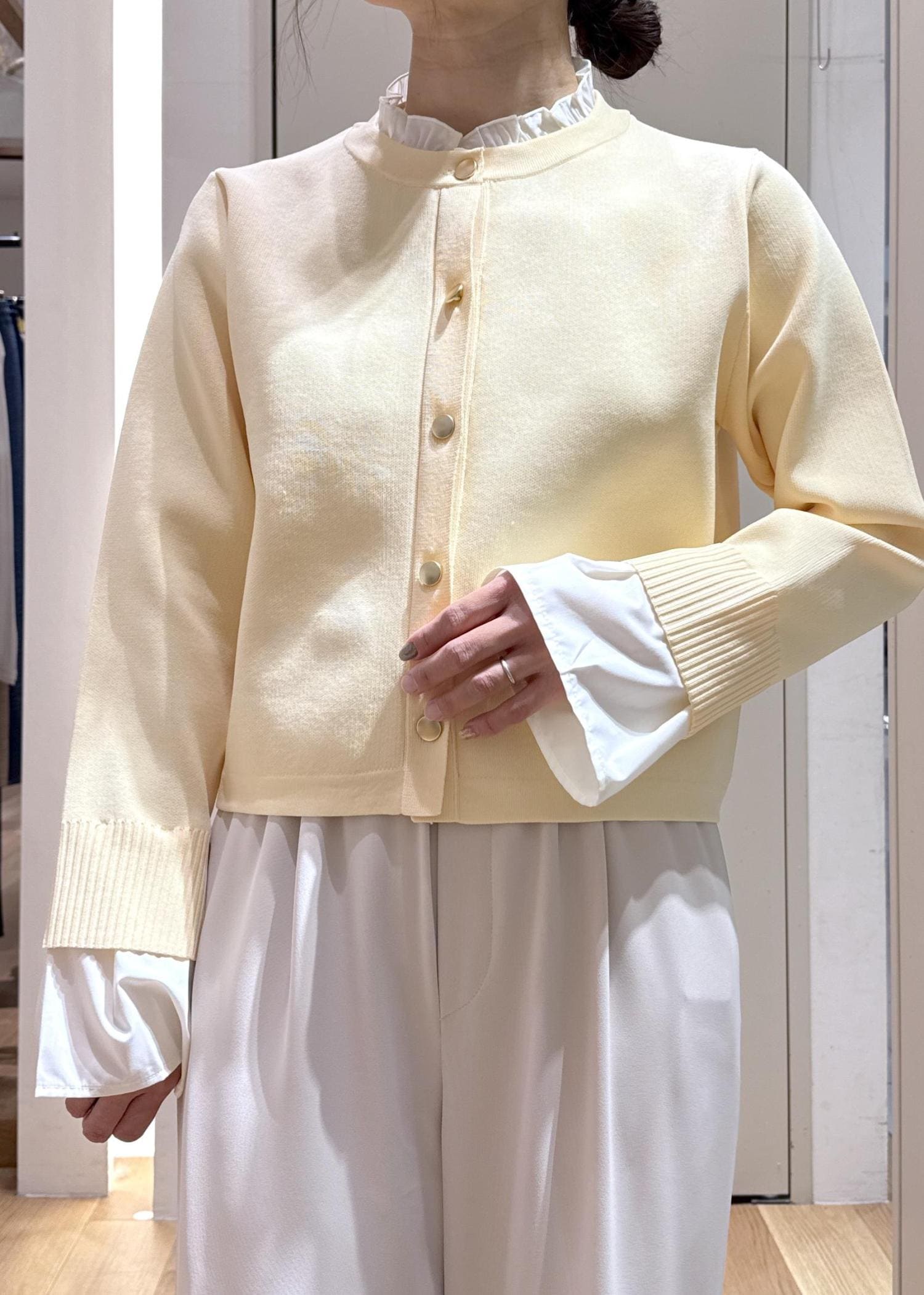 インナーはイエローやホワイトなど明るく春らしさもあるコーディネートにしてみました♪