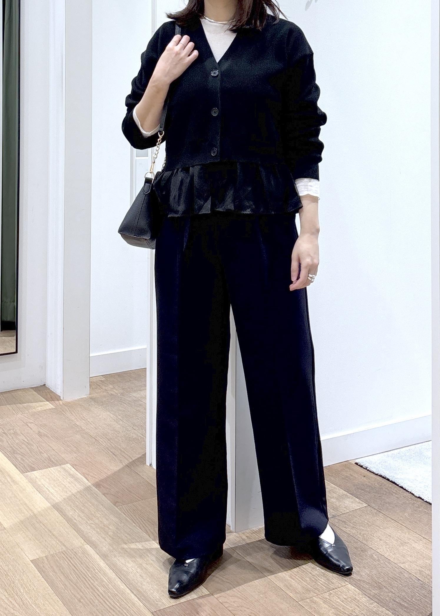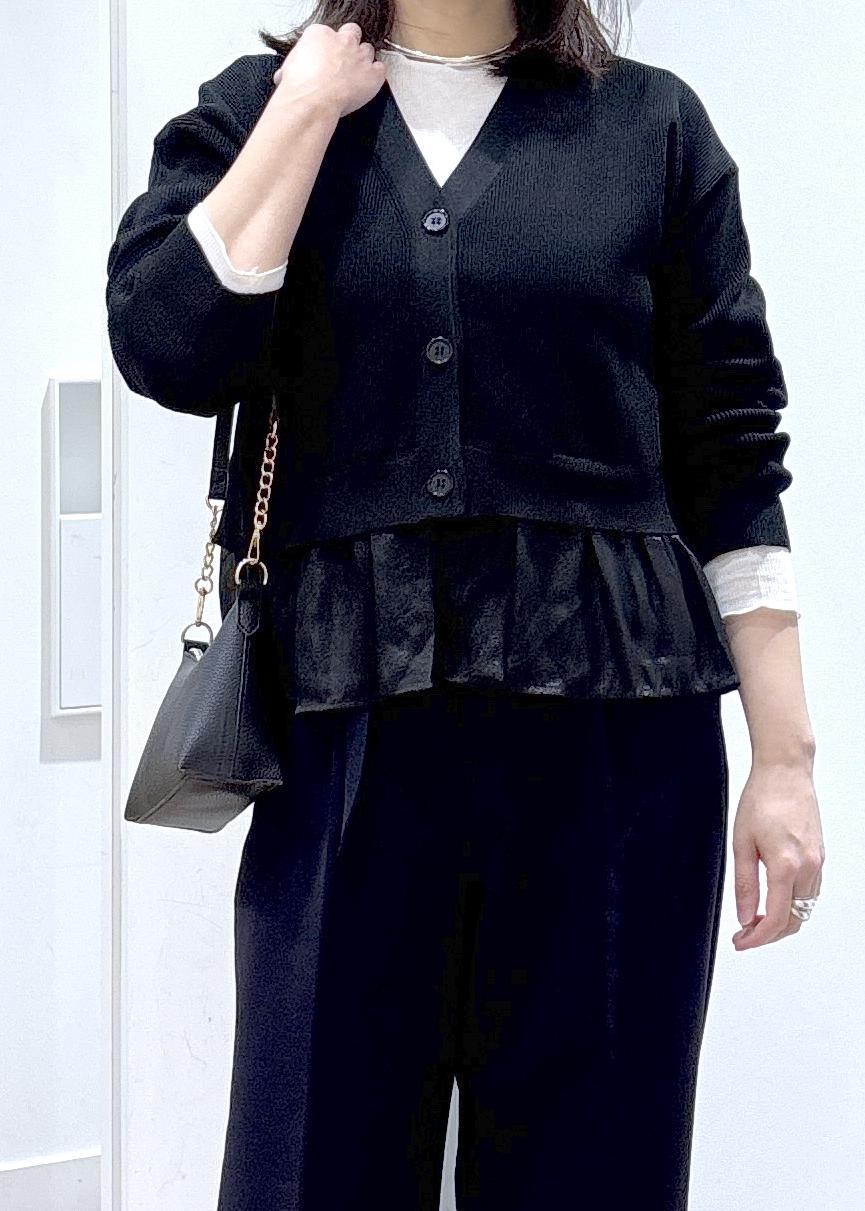 2BUY10%OFFROPÉ PICNIC異素材ドッキングニットカーディガン/イージーケアブラック / F¥5,489レビューカーディガン自体はウエストくらいのショート丈となっており、裾のシフォン部分を合わせると腰にかかるくらいの長さになります。ゆるっとしたシルエットがとてもかわいいカーディガンです。