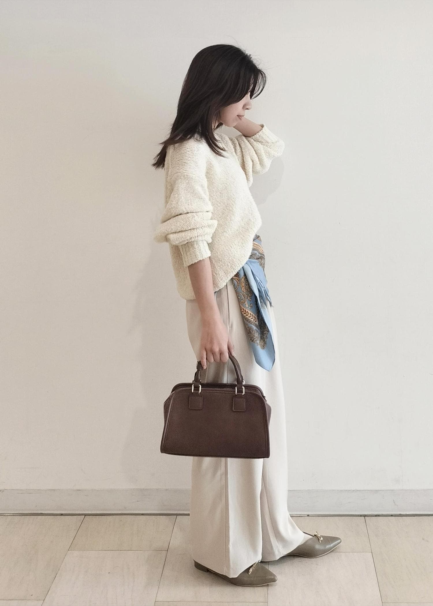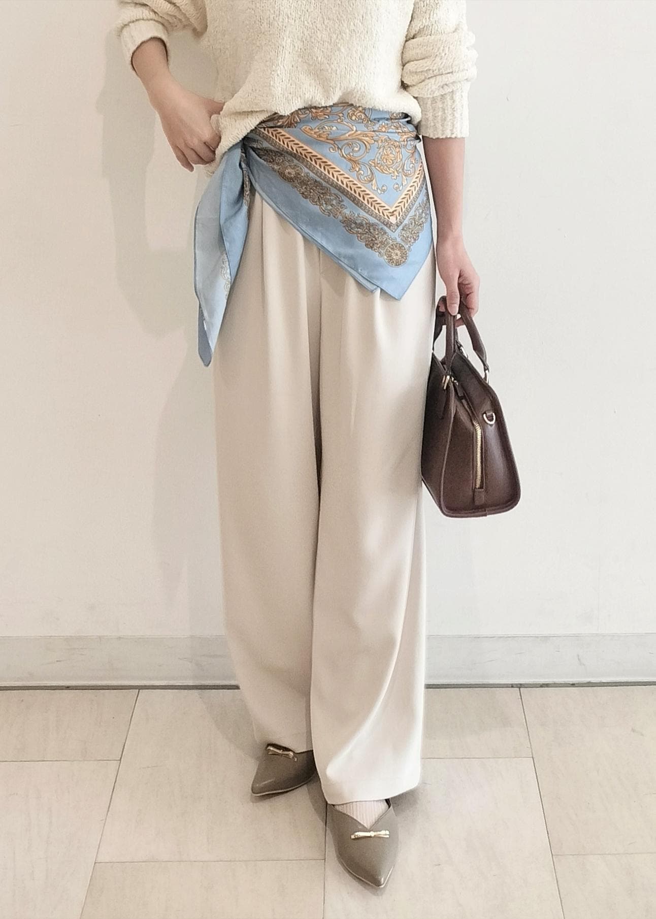 ニットとパンツをワントーンでまとめた大人カジュアルコーデにしました!ぼやっとしないように素材感の違うアイテムで合わせる&小物でアクセントをつけるのがポイントです✨