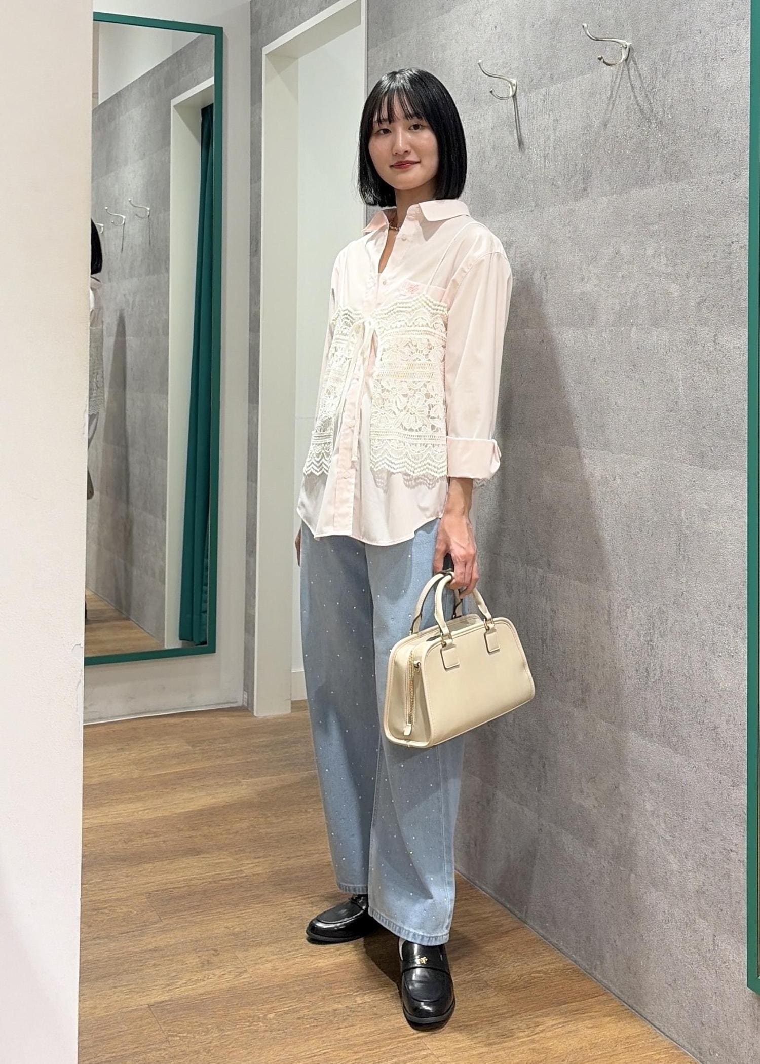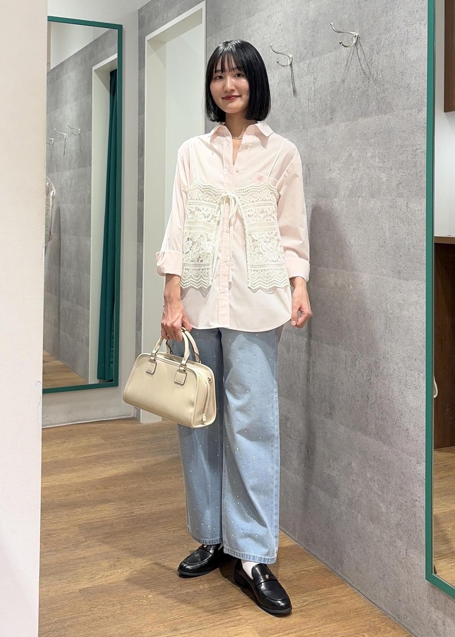 レースのアイテムを取り入れると、トレンド感のあるコーデになります。