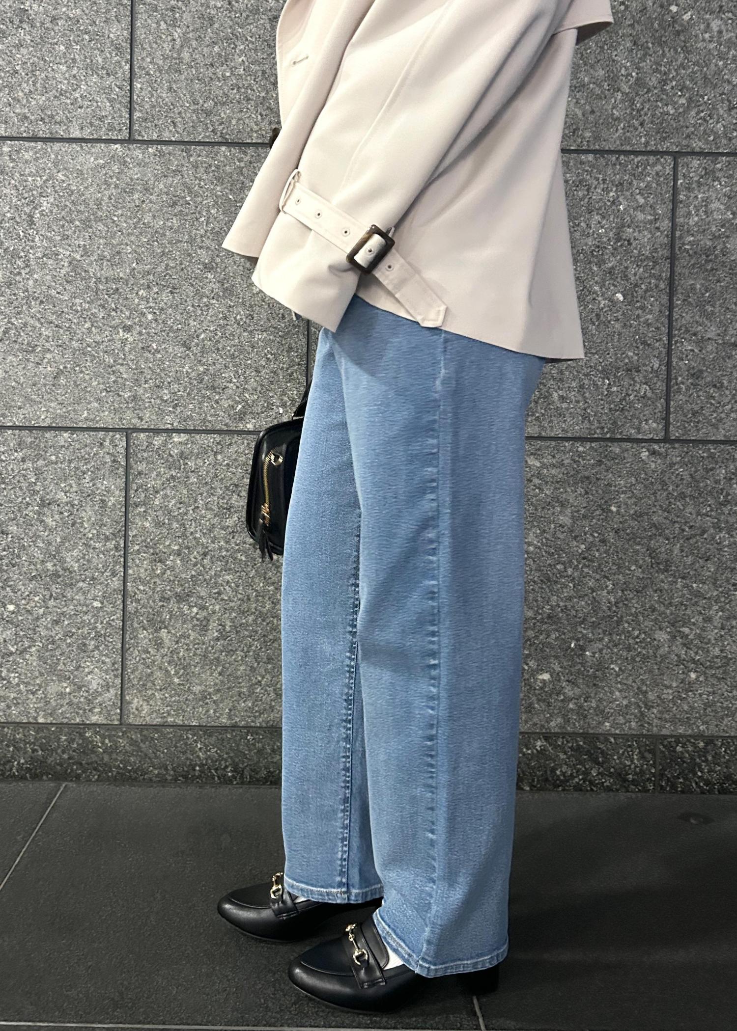 パールの付いたキレイめトップスとトレンチコートにキレイめになりすぎないようにデニムパンツを合わせてお出掛け用にも着れる大人なカジュアルコーデに仕上げました!