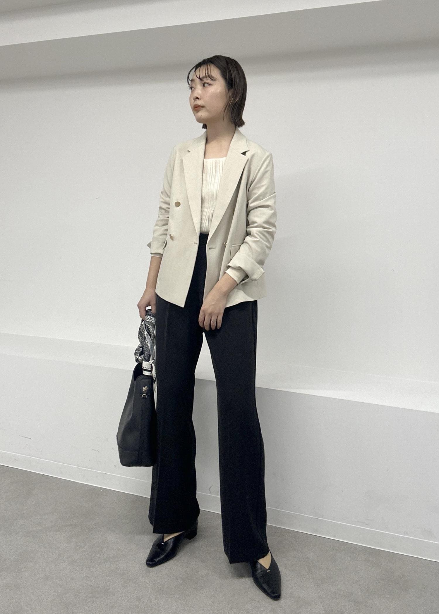 パンプスもポインテッドトゥを合わせてさらにシャープな印象に!