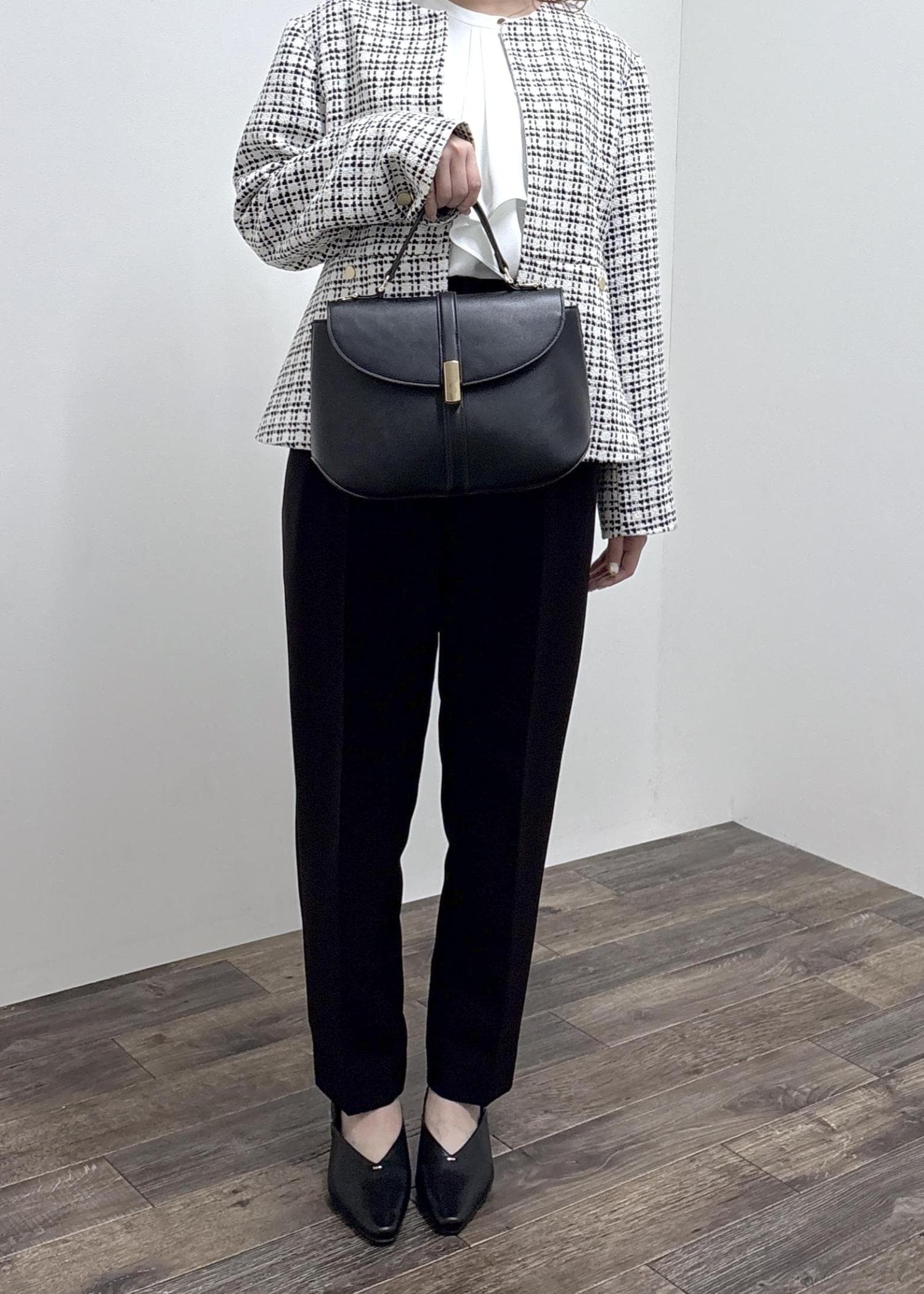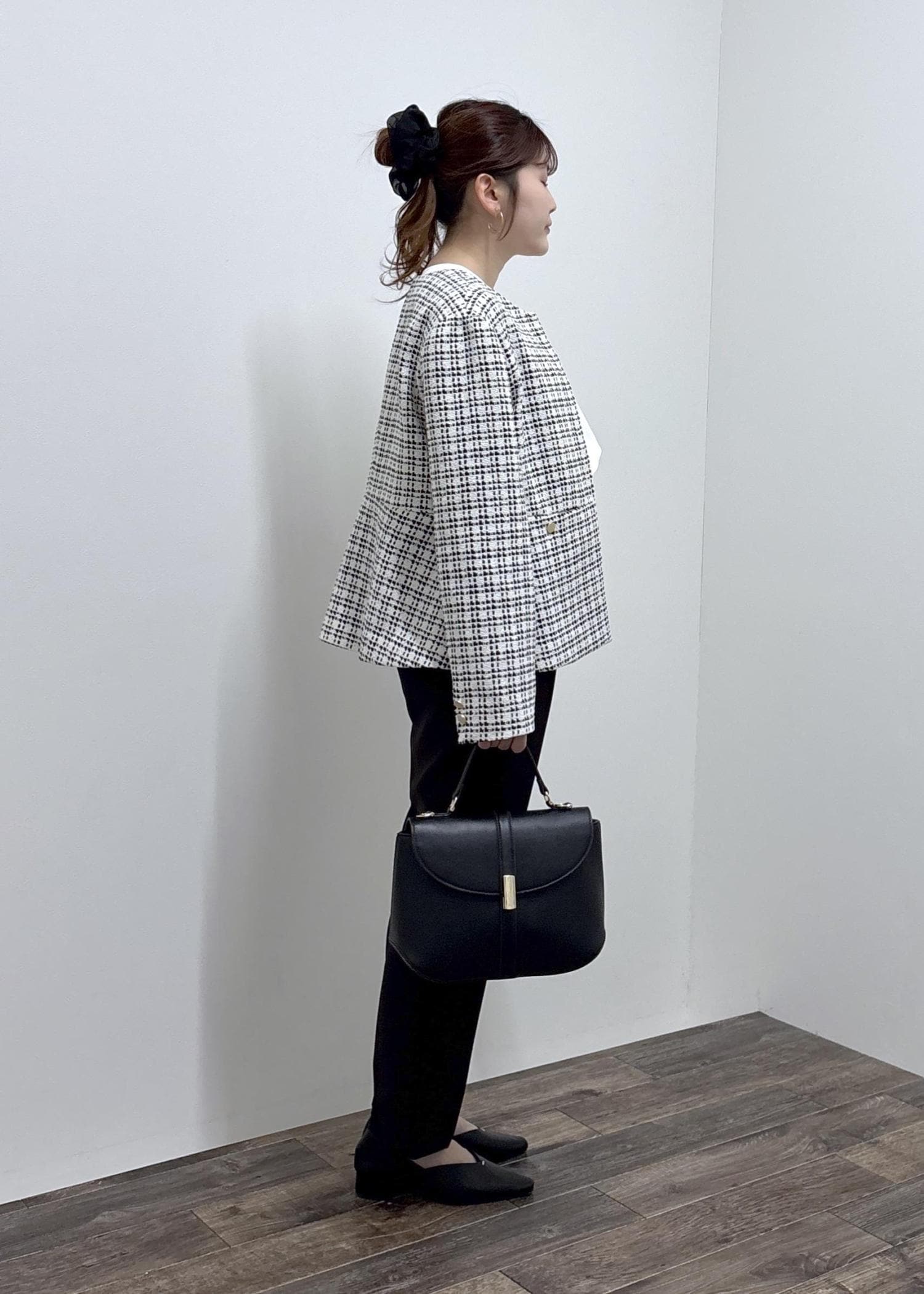 踵が踏めるバブーシュなのでカジュアルにもオススメです。