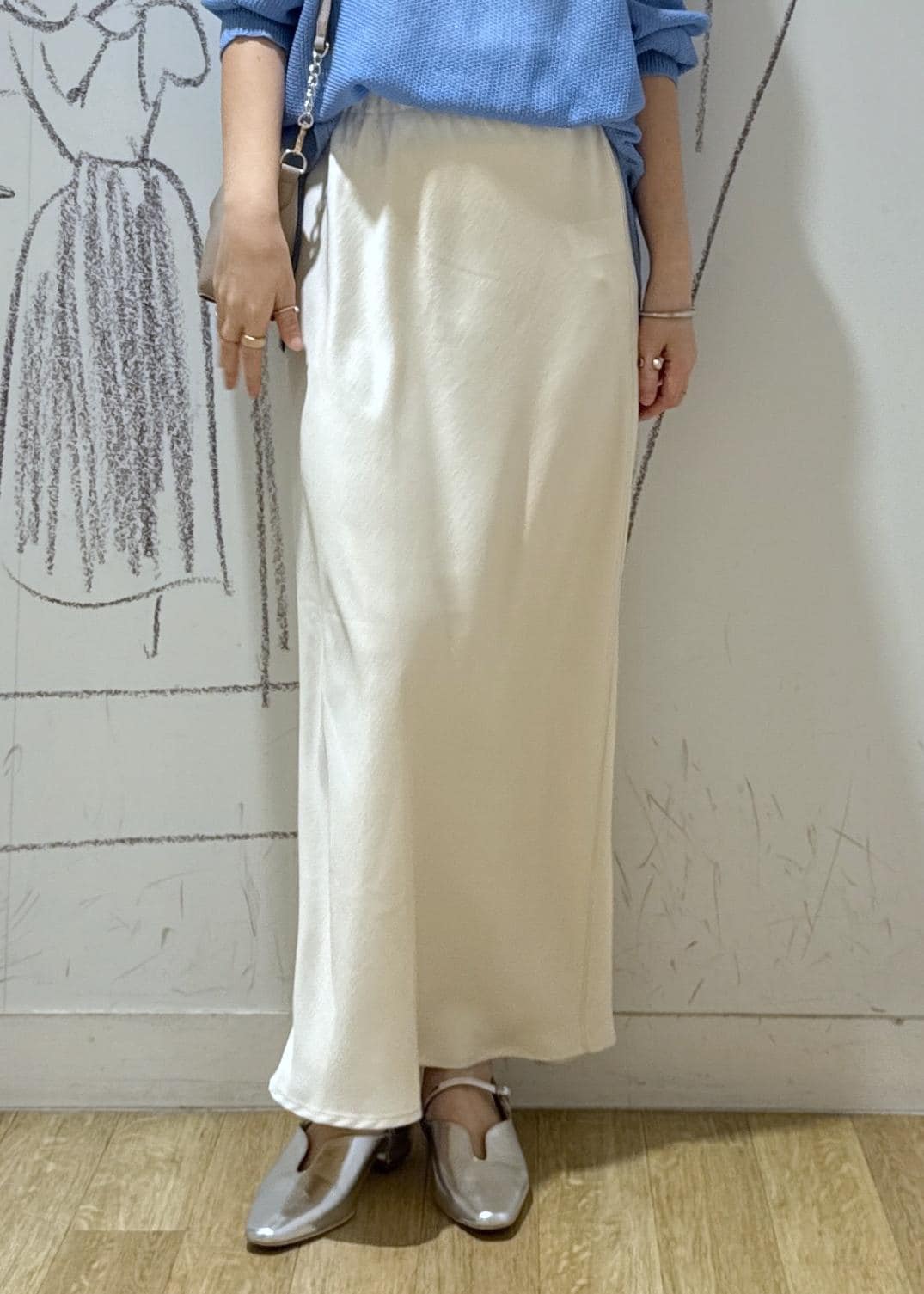 ROPÉ PICNIC細見えバイアスサテンスカート/イージーケアオフホワイト / F¥6,490レビューインナーは若干響く為、チュニック丈のトップスを合わせるかペチパンツなどを履くと安心です。着丈はくるぶしが隠れる長さです。ストンと落ちるシルエットが女性らしく素敵です。