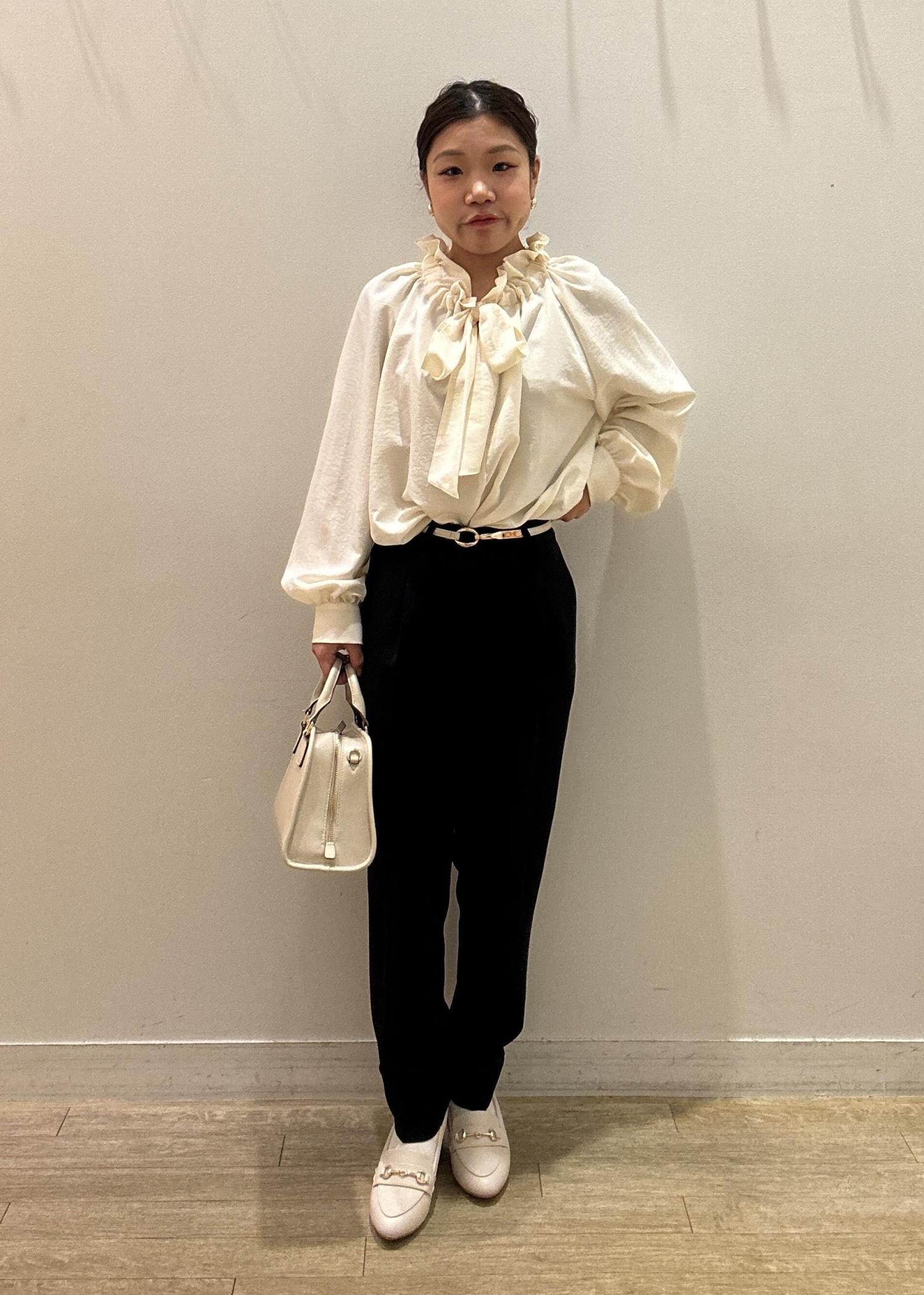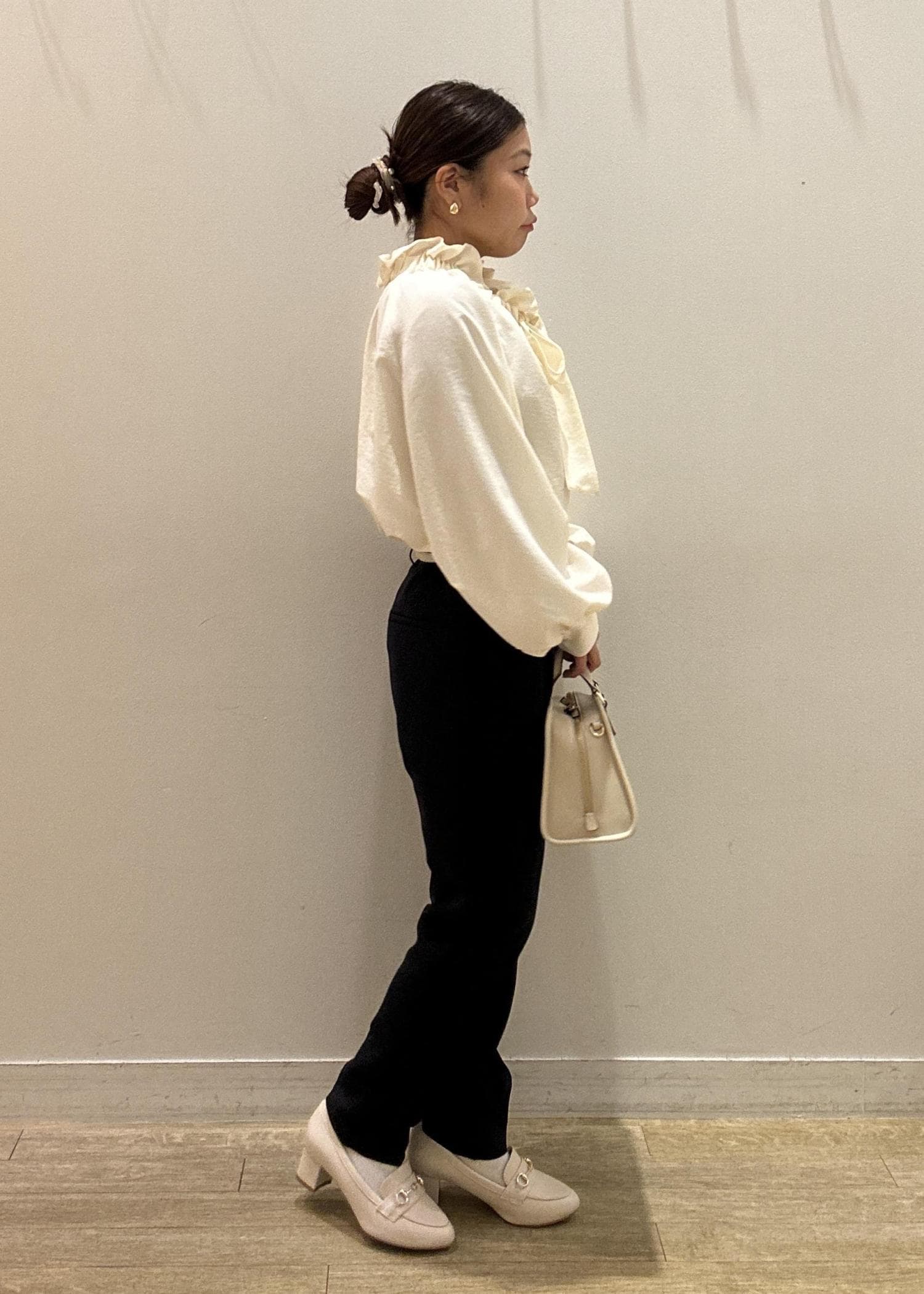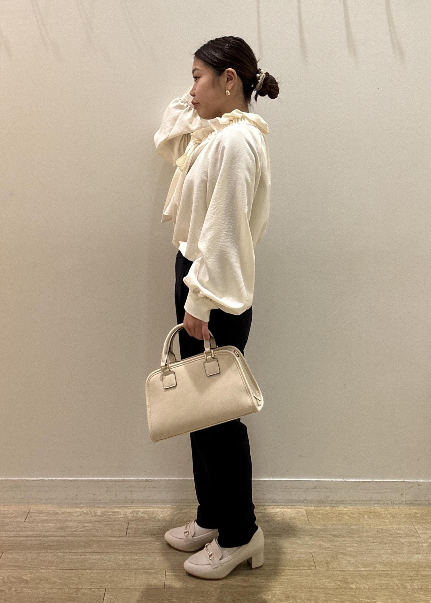 透け感のある素材なのでインナーは目立たない白やグレーがおすすめです。 -