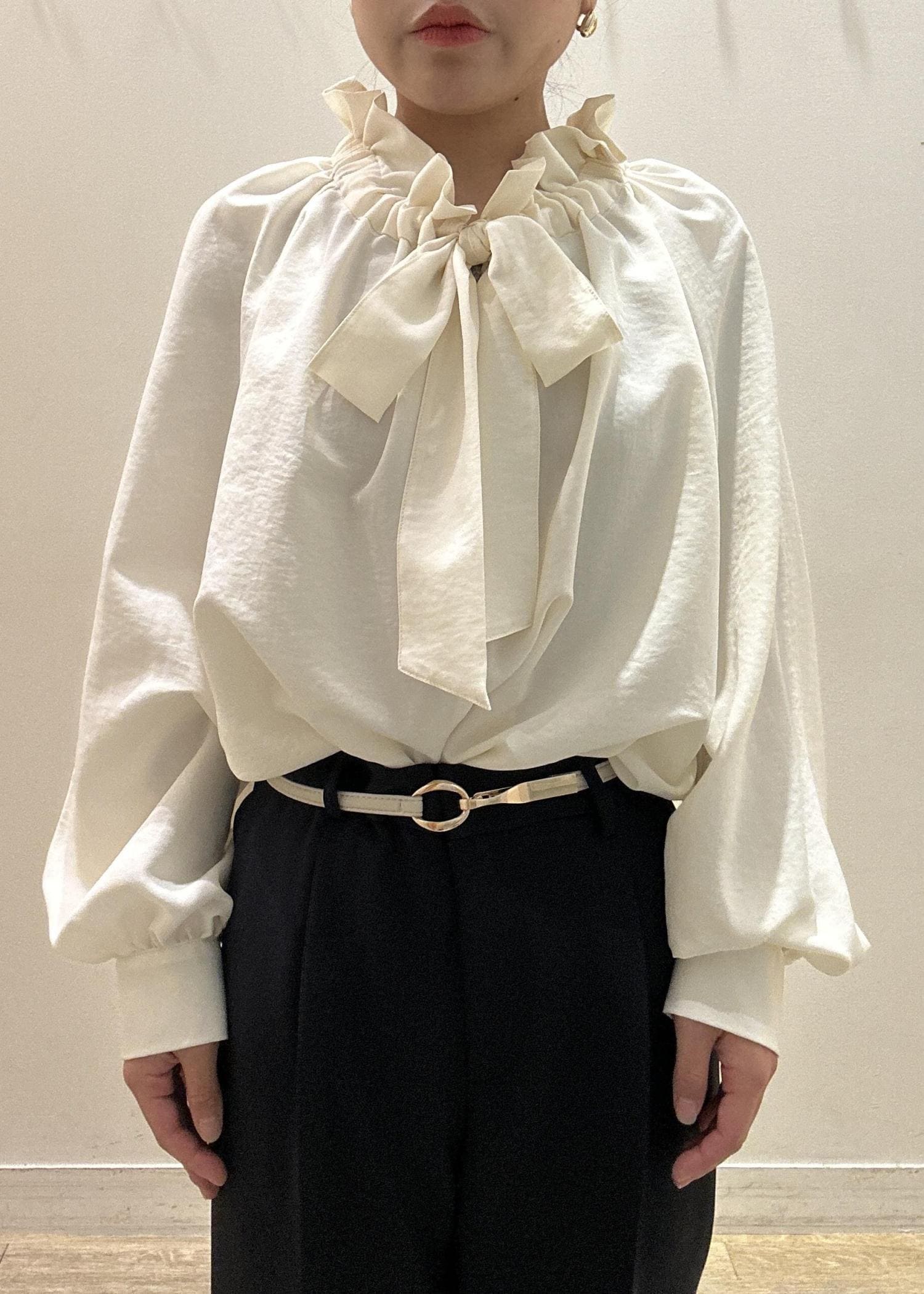 ROPÉ PICNICネックコンシャスデザインシャツ/イージーケアクリーム / F¥5,995レビュー首周りがクシュっとなる、華やかでトレンド感のあるブラウスです。