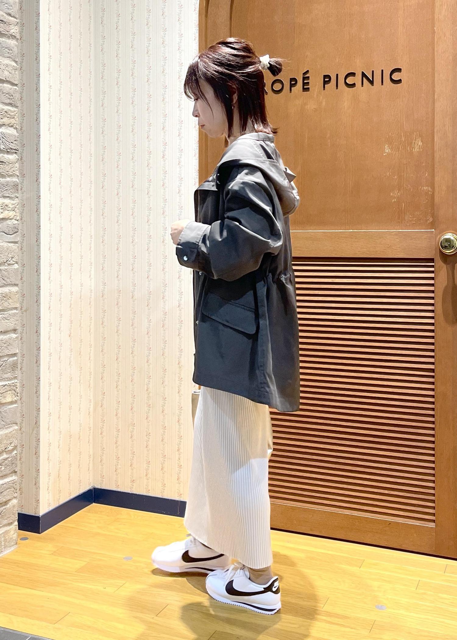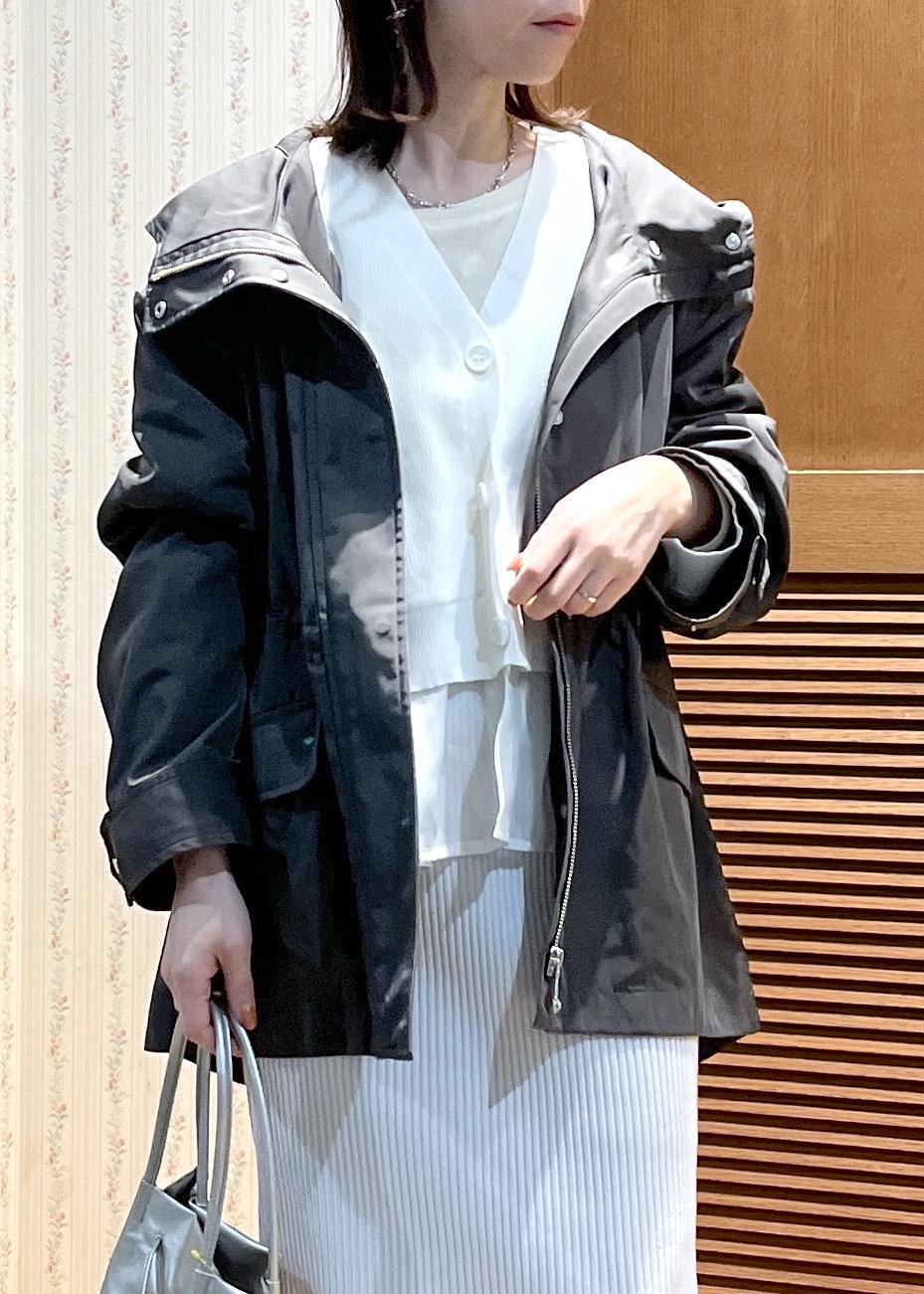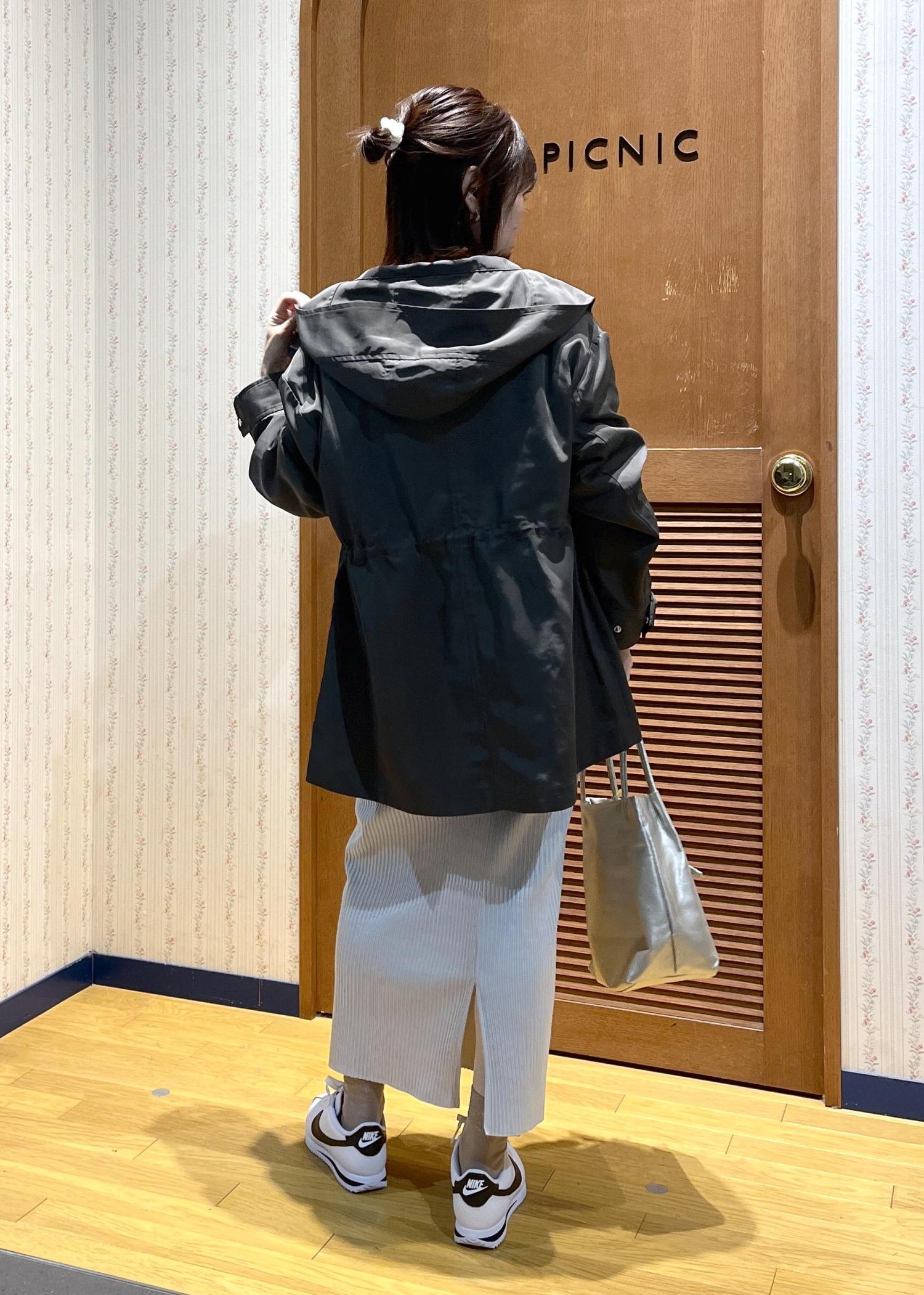ROPÉ PICNICミドル丈マウンテンパーカー スプリングコート/撥水・花粉ガードチャコール / F¥13,200レビュー軽くてサラッとした素材感で、ヒップが隠れるくらいの丈感です。
