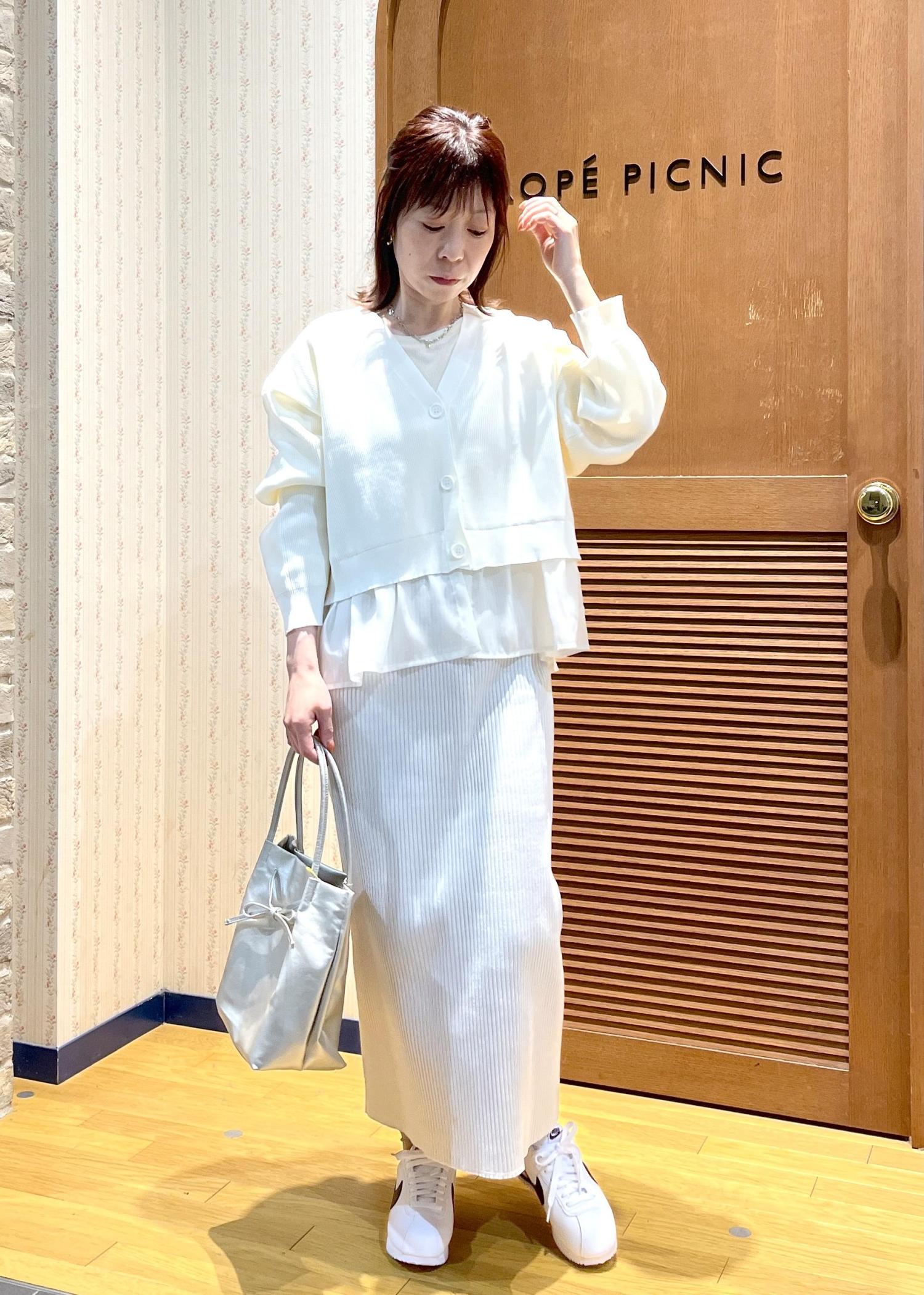春らしい白のワントーンコーデでまとめました。