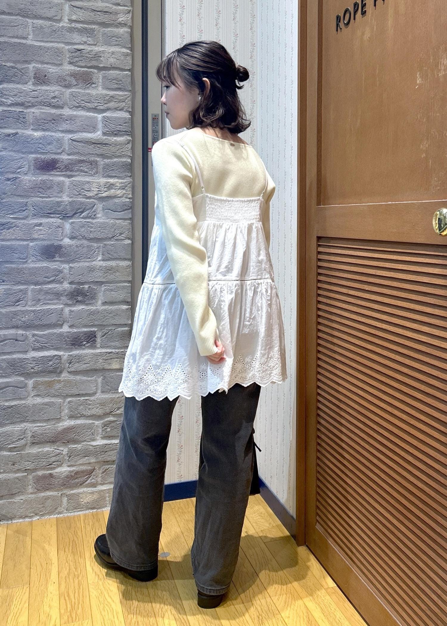 ROPÉ PICNICVネックティアードレースビスチェホワイト / F¥5,489レビュー薄手で軽い素材なので、トップスの上から着ても、中に着ても、どちらもストレスフリーな着心地でした。肩紐の長さが調整出来るので、低身長さんも長すぎることなく着用できます◎