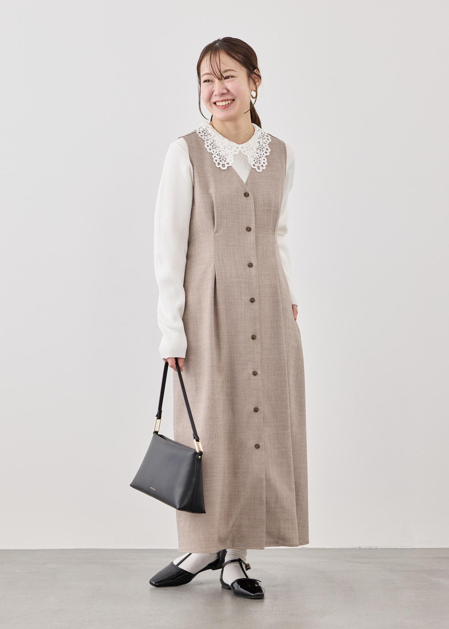 シンプルなシルエットなのでスッキリとした印象で着こなしができます。