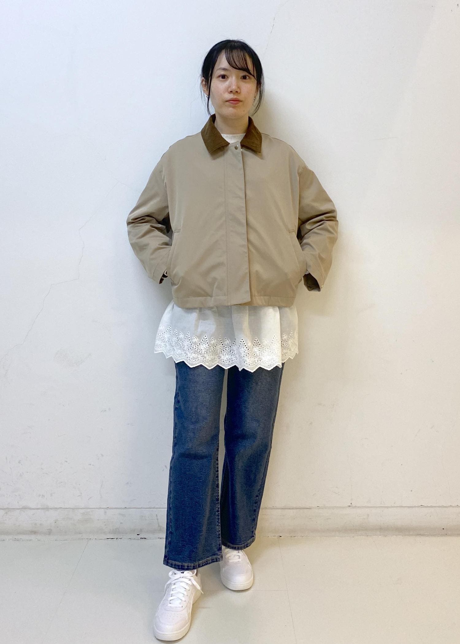 丈感はジャストで、幅広いボトムスに合わせやすい!