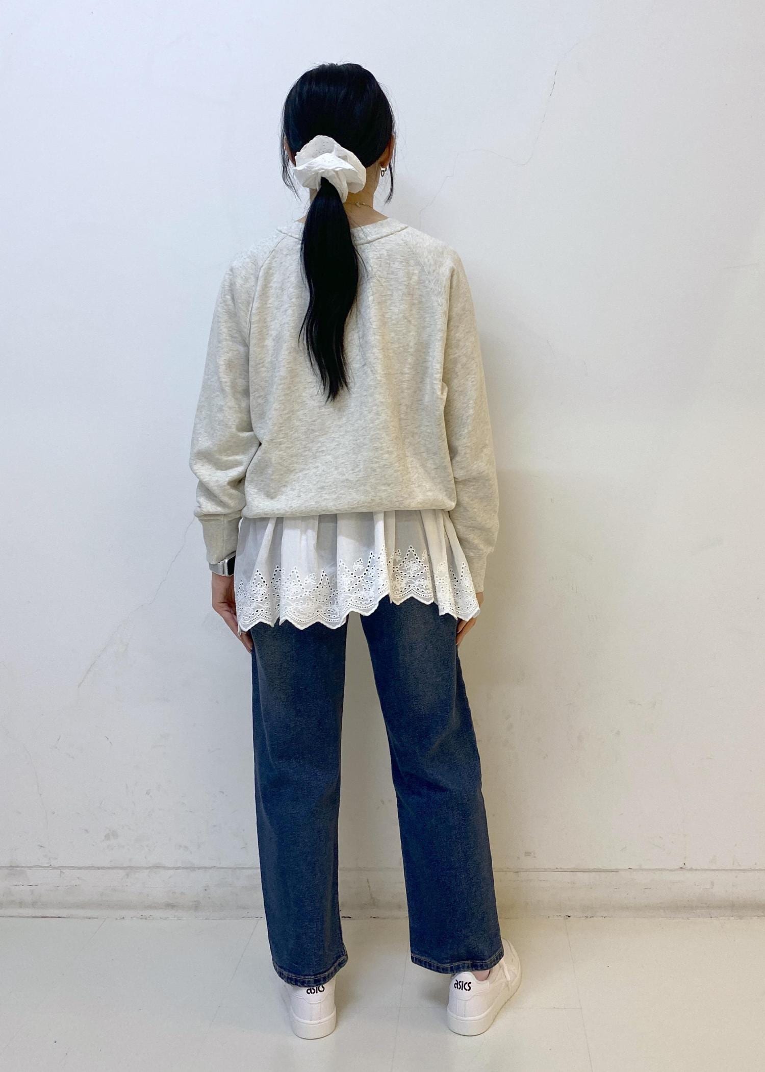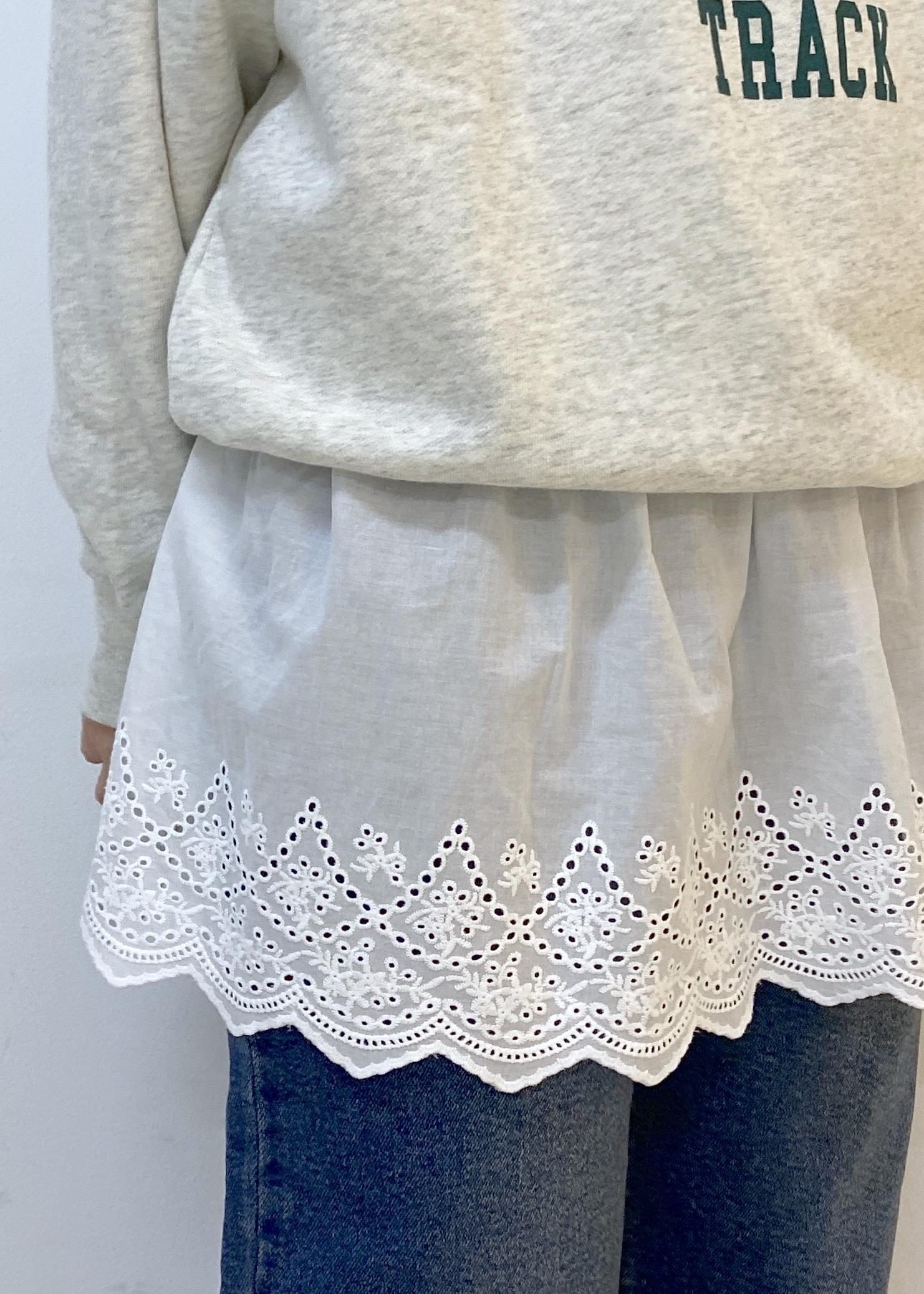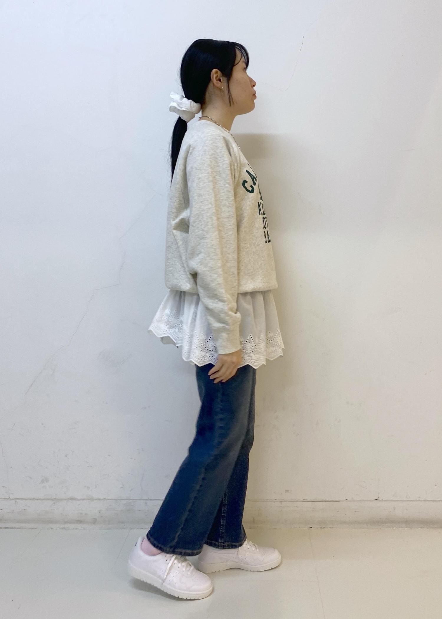 ロペピクニック別注のスウェットからレースビスチェの裾をチラ見せ。