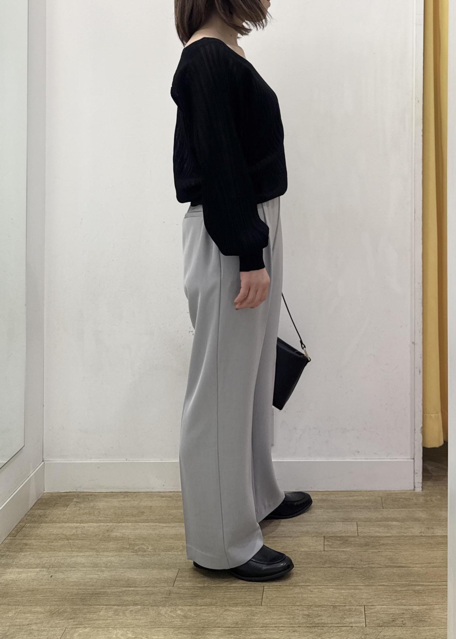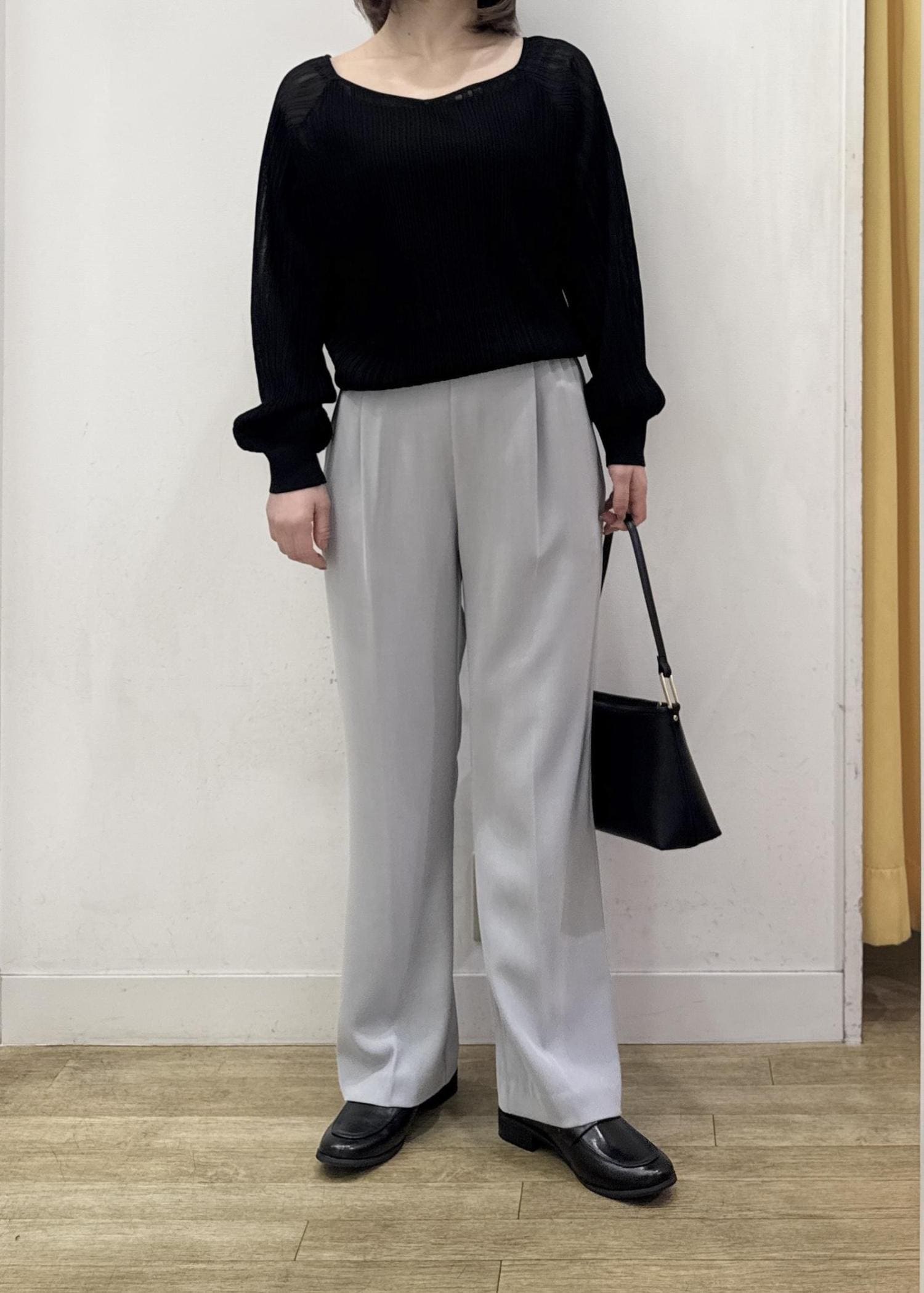 ブラックのニットはシアー感もあるのでシックな雰囲気の中に軽さも出せます☺︎