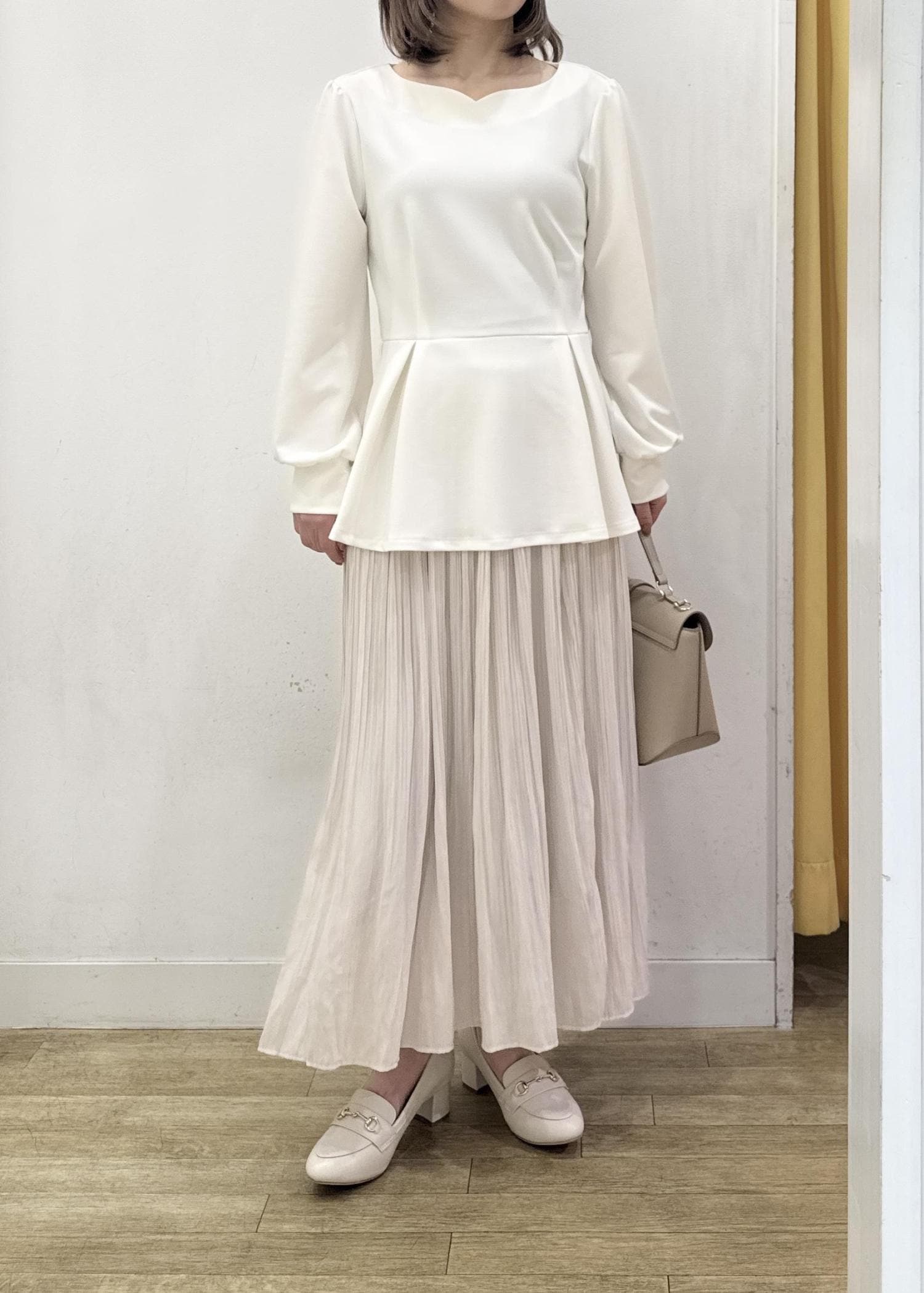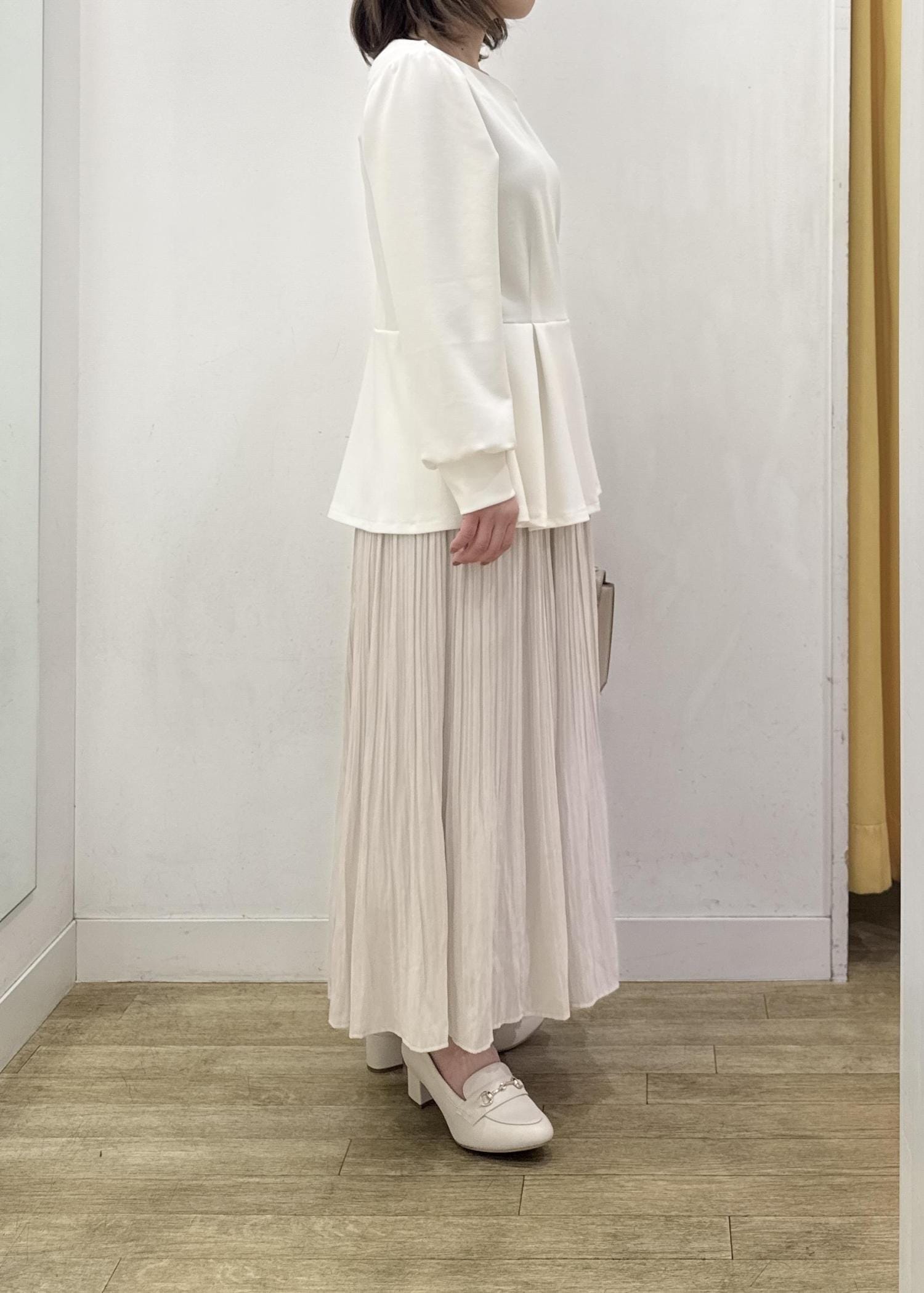 細かめのプリーツなので、広がり過ぎないゆるやかなフレアなシルエット。