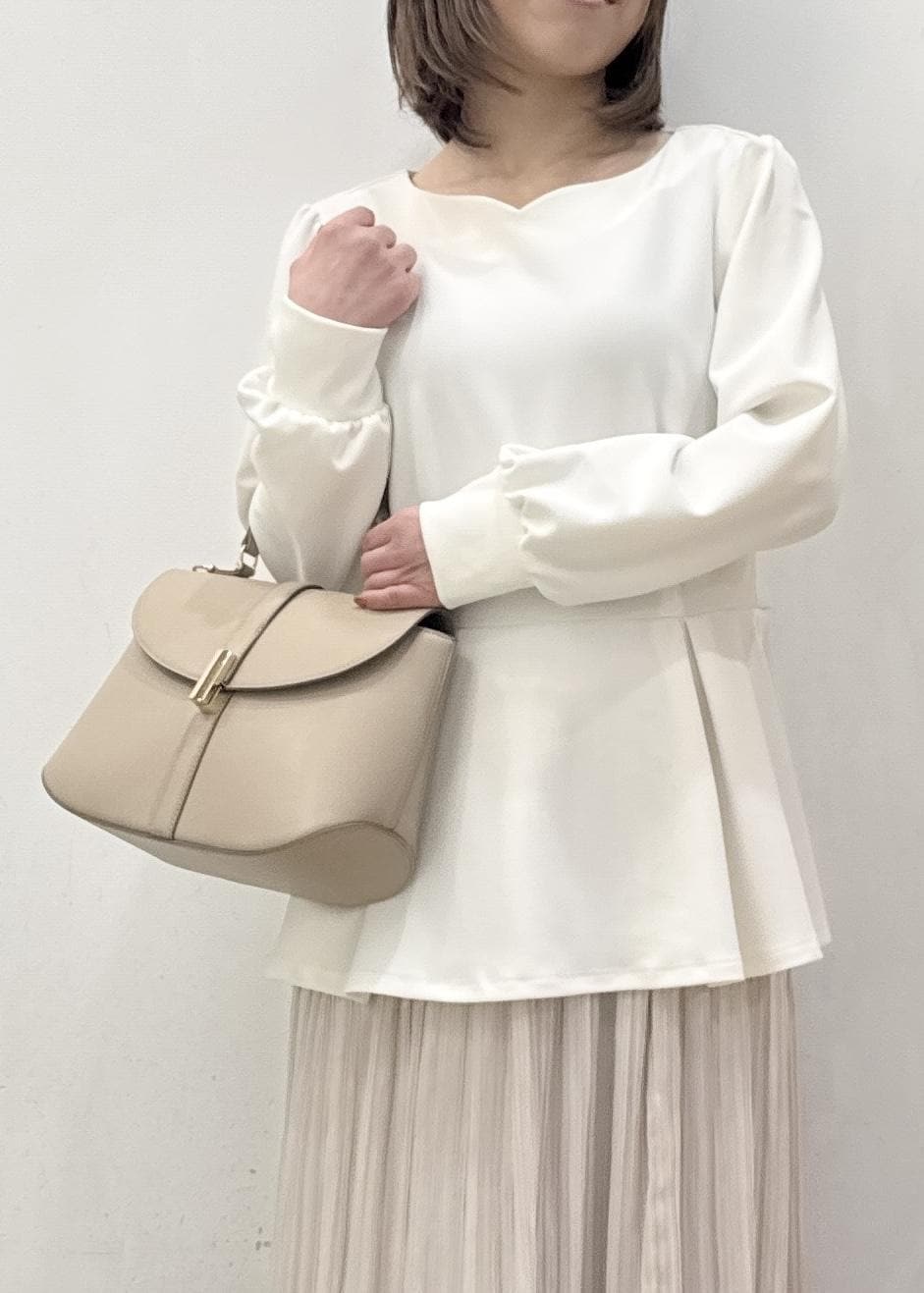 ペプラムシルエットでスッキリ感もありつつ、ヒップまわりをカバーできるデザインも安心感があります。 -