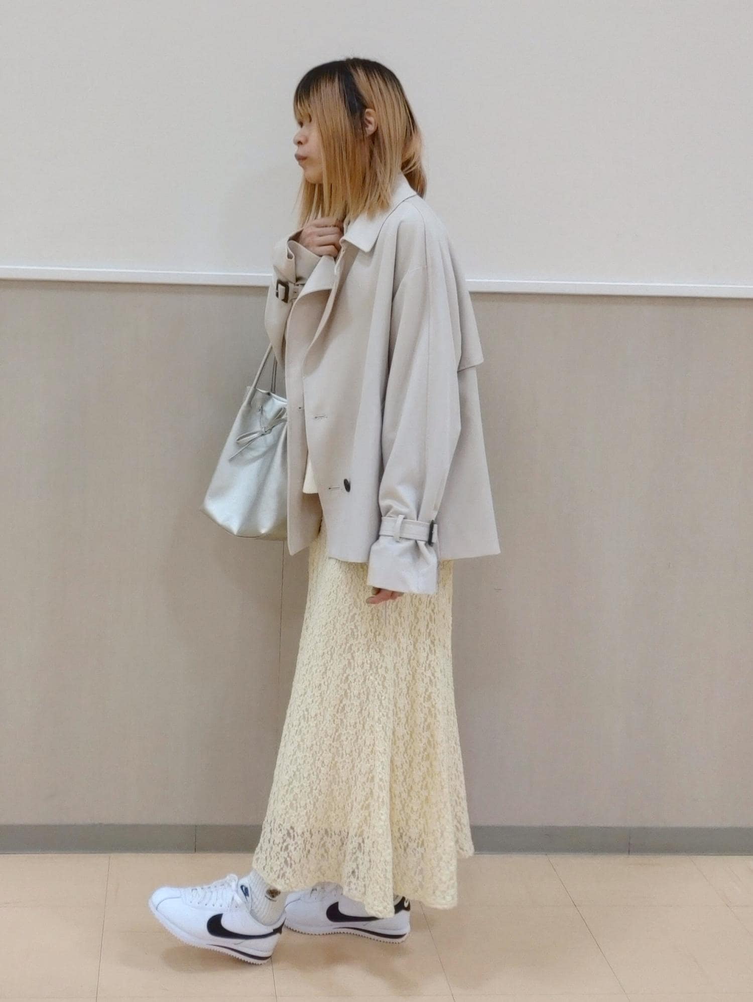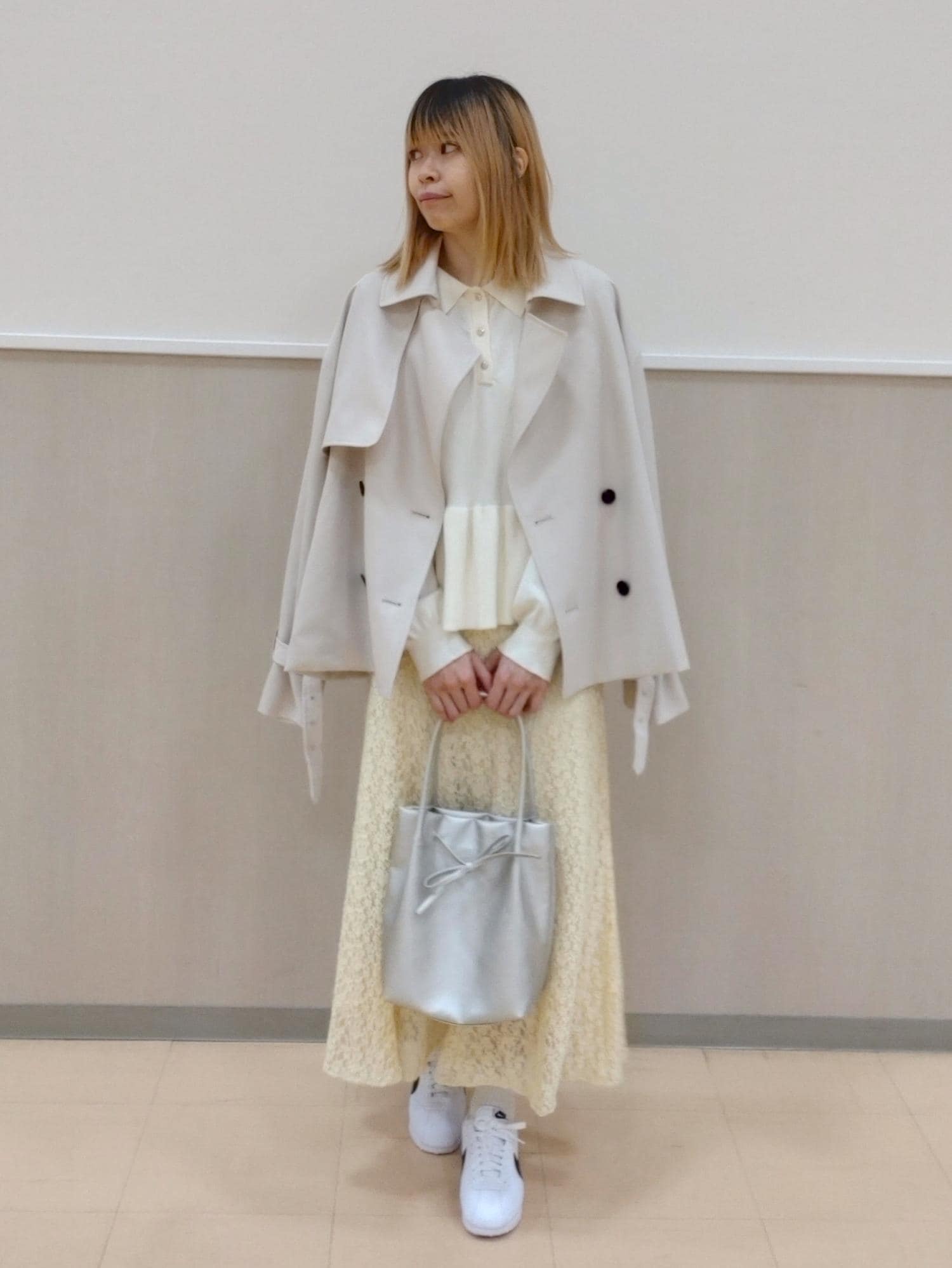 黄色のスカートが主役のコーディネートです