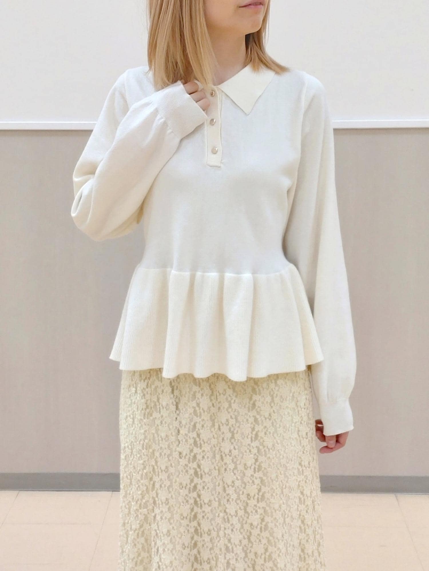 ROPÉ PICNICペプラムポロカラーニットオフホワイト / F¥4,391レビュー薄地で柔らかい生地で着心地抜群のペプラムニットです