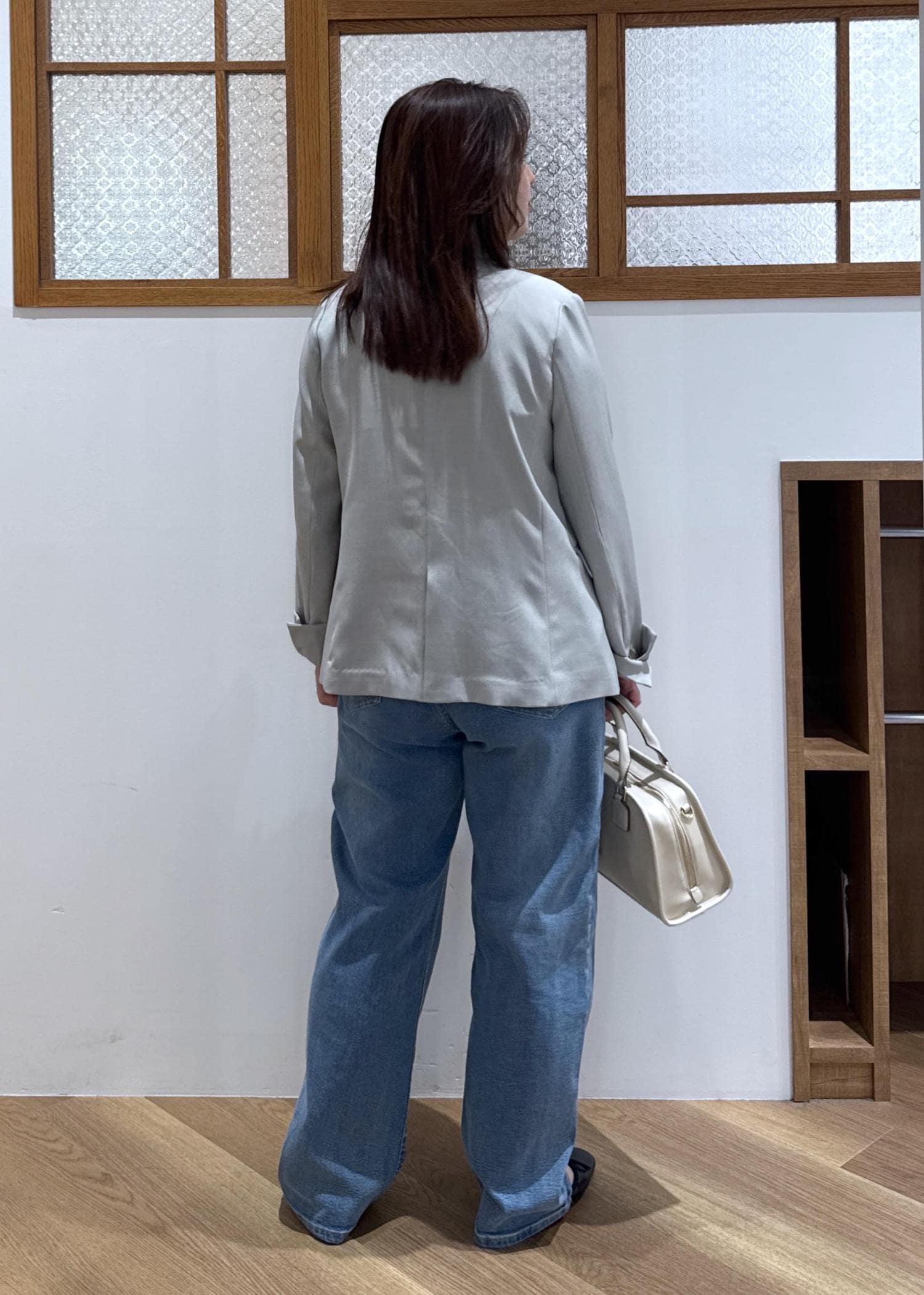 シャリ感ある生地で、程よい張りとしなやかな生地で作られているので初春から初夏にかけておすすめです! -