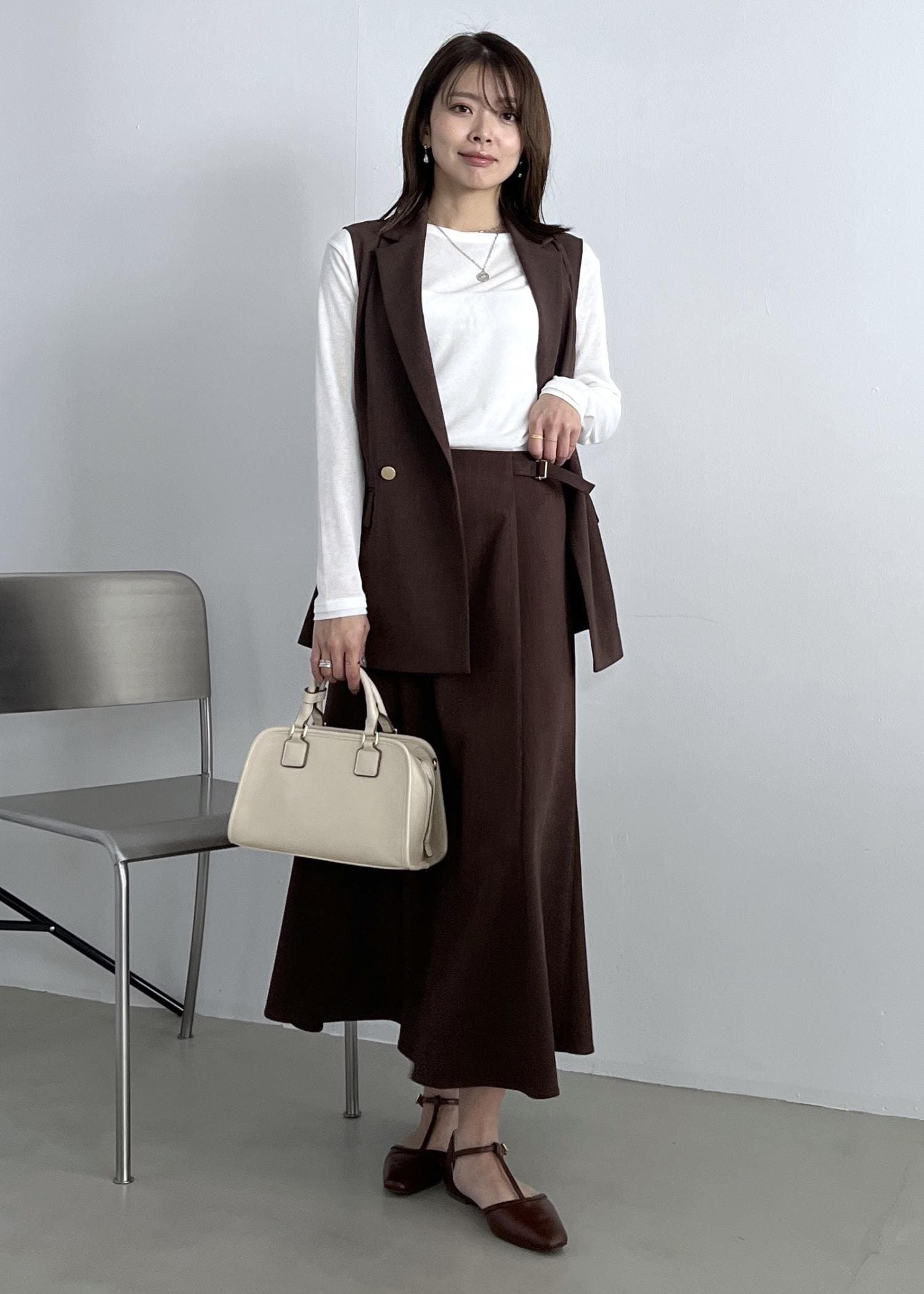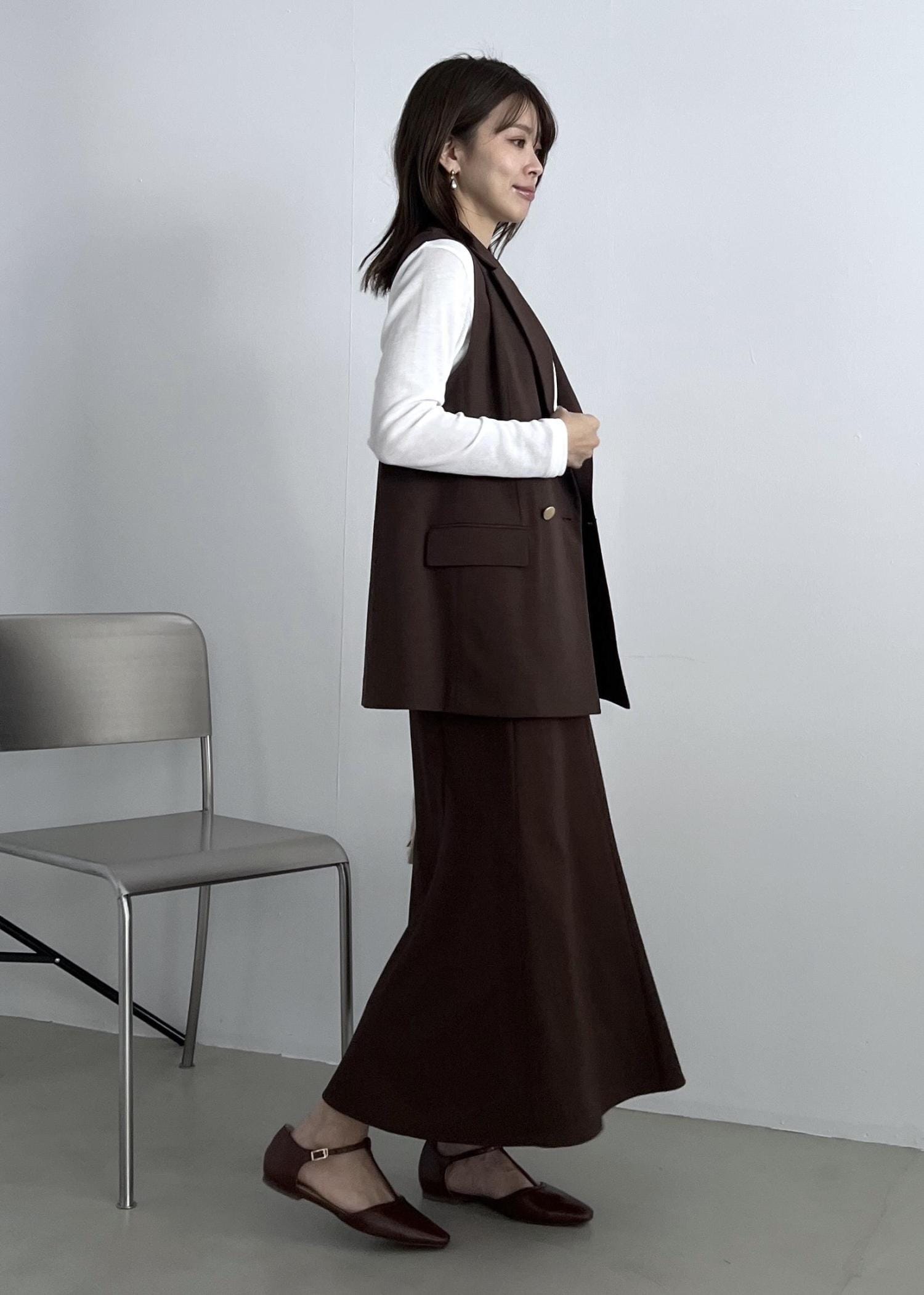 ジレ×スカートのセットアップスタイル