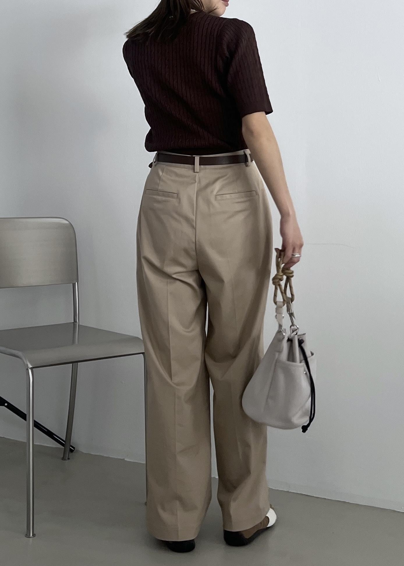 筒幅は脚のラインを拾わずストンとしたワイドシルエット。 -