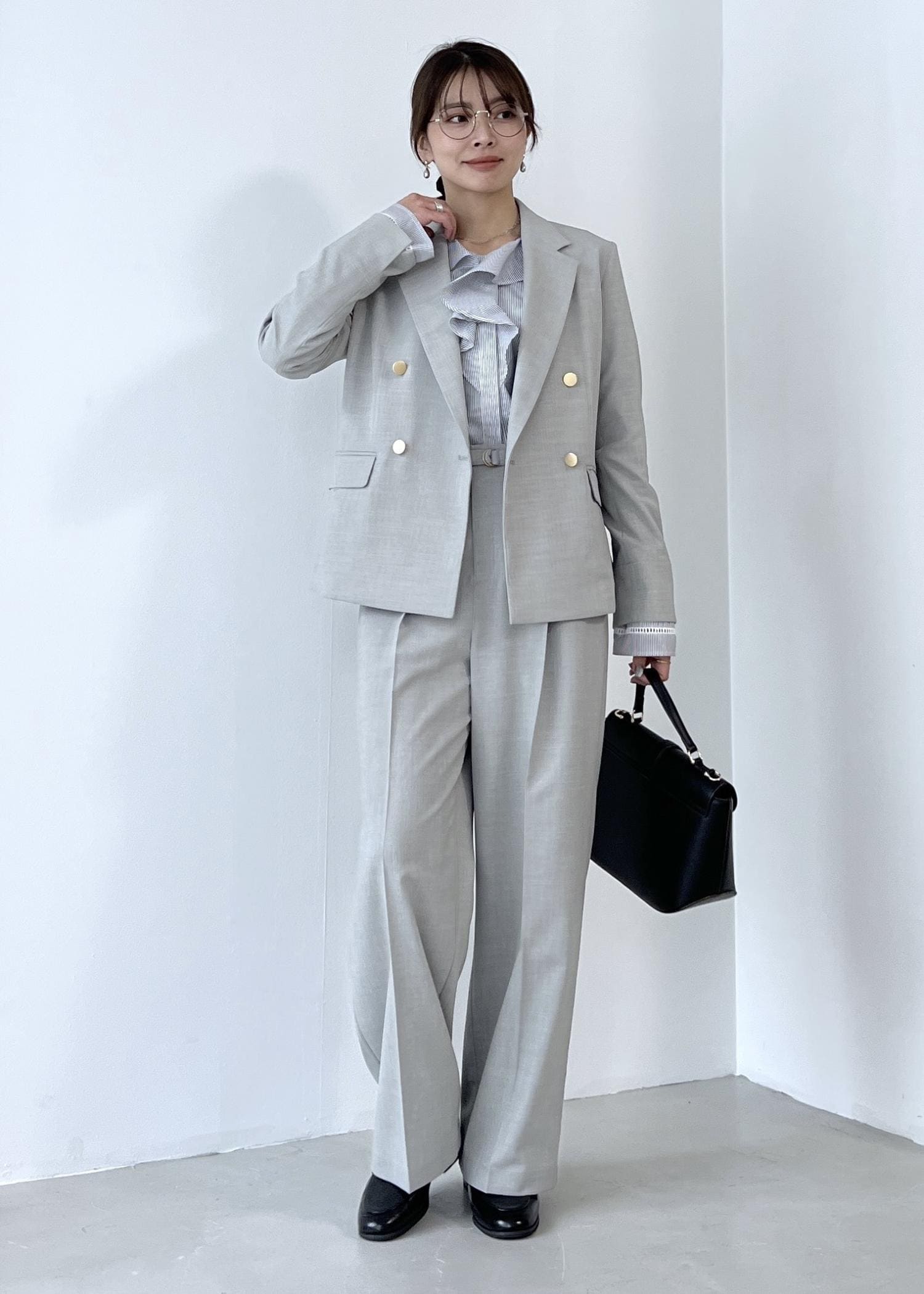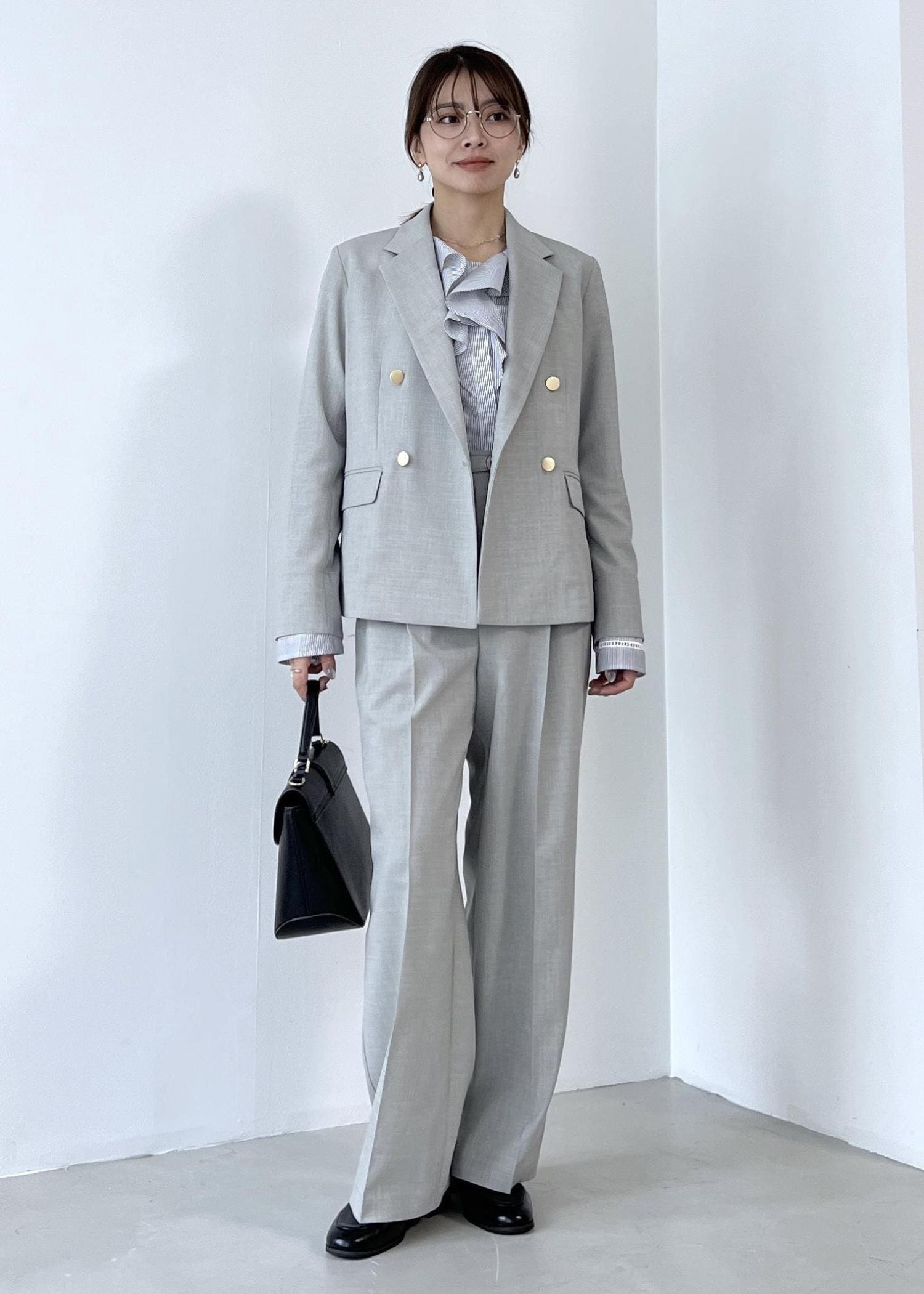 ジャケットとパンツのセットアップは春のきれいめスタイルにおすすめ。