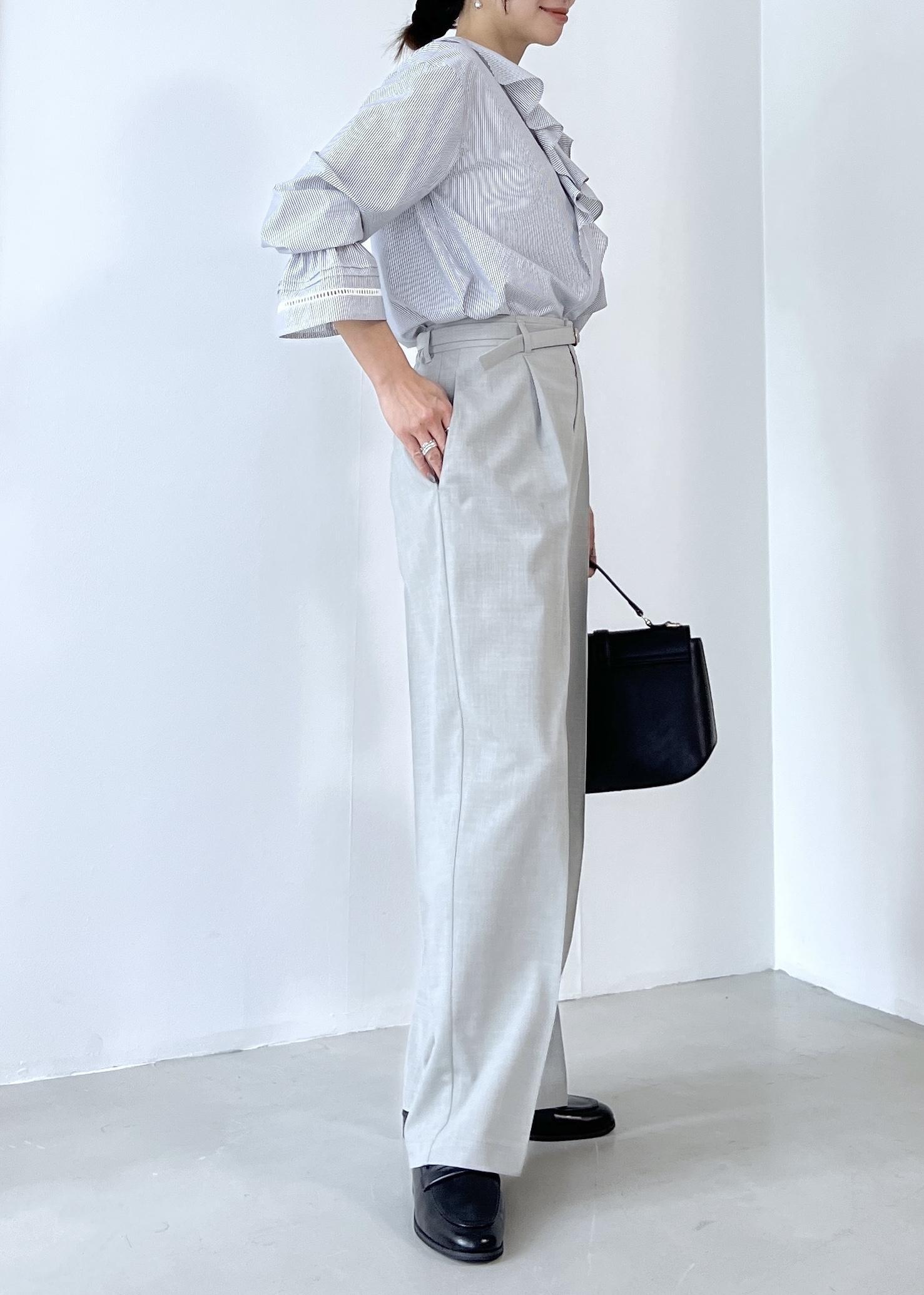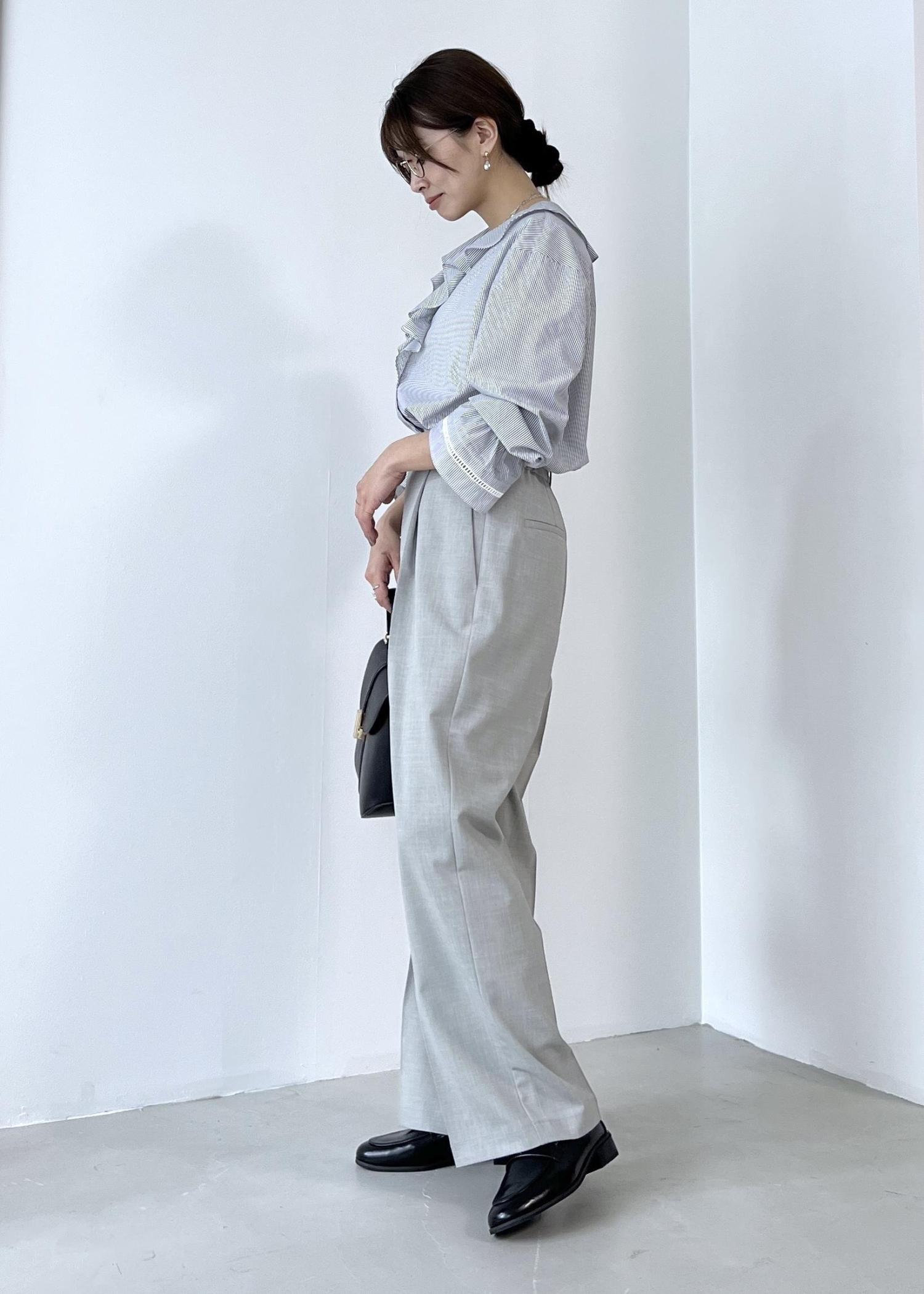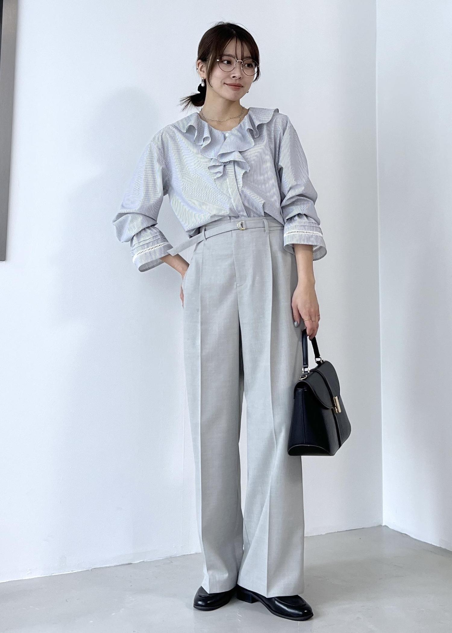 フリルブラウスをインして華やかさもあるコーデにしました。