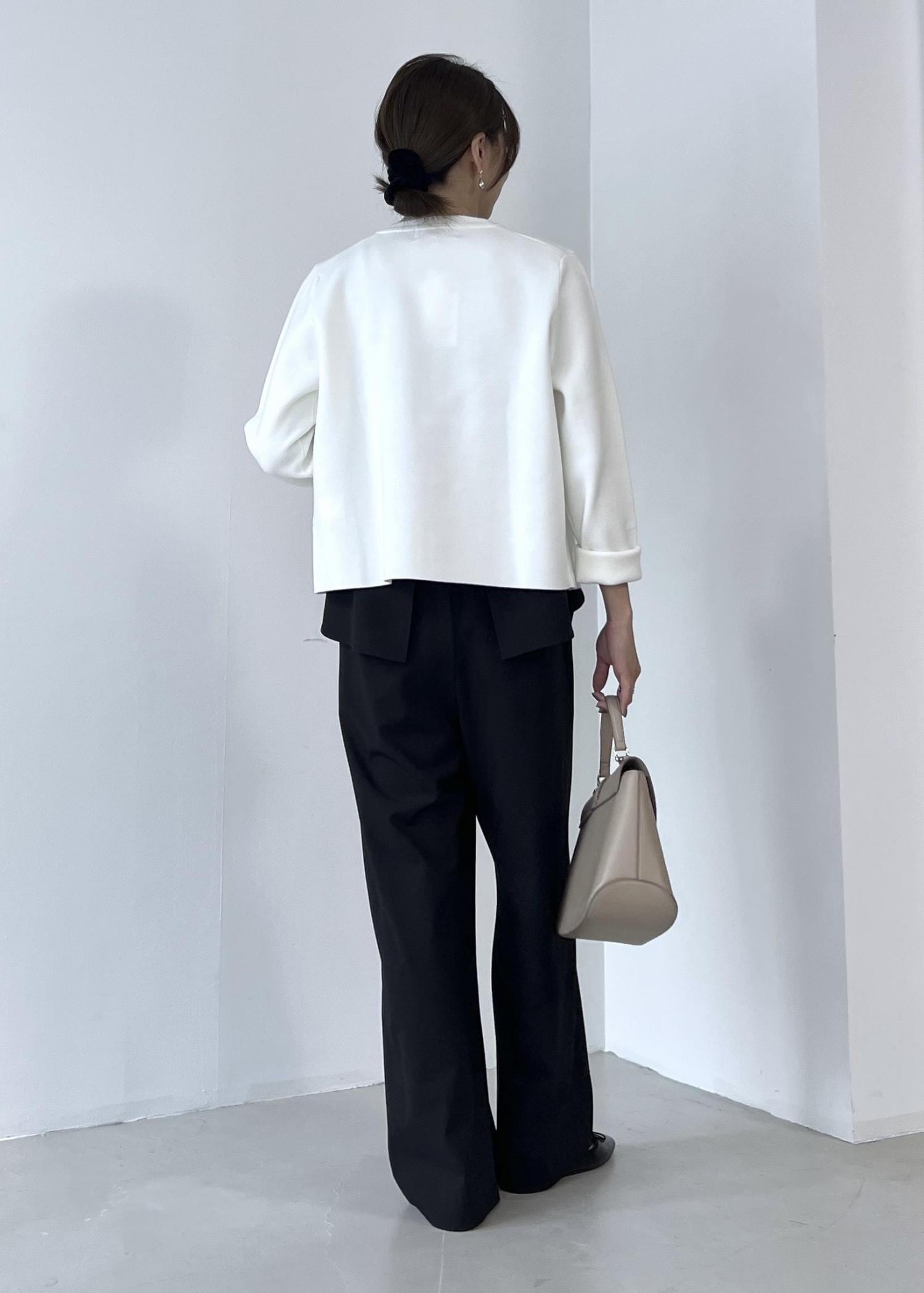 ジャケット風のニットカーディガンはきれいめカジュアルコーデにぴったり。