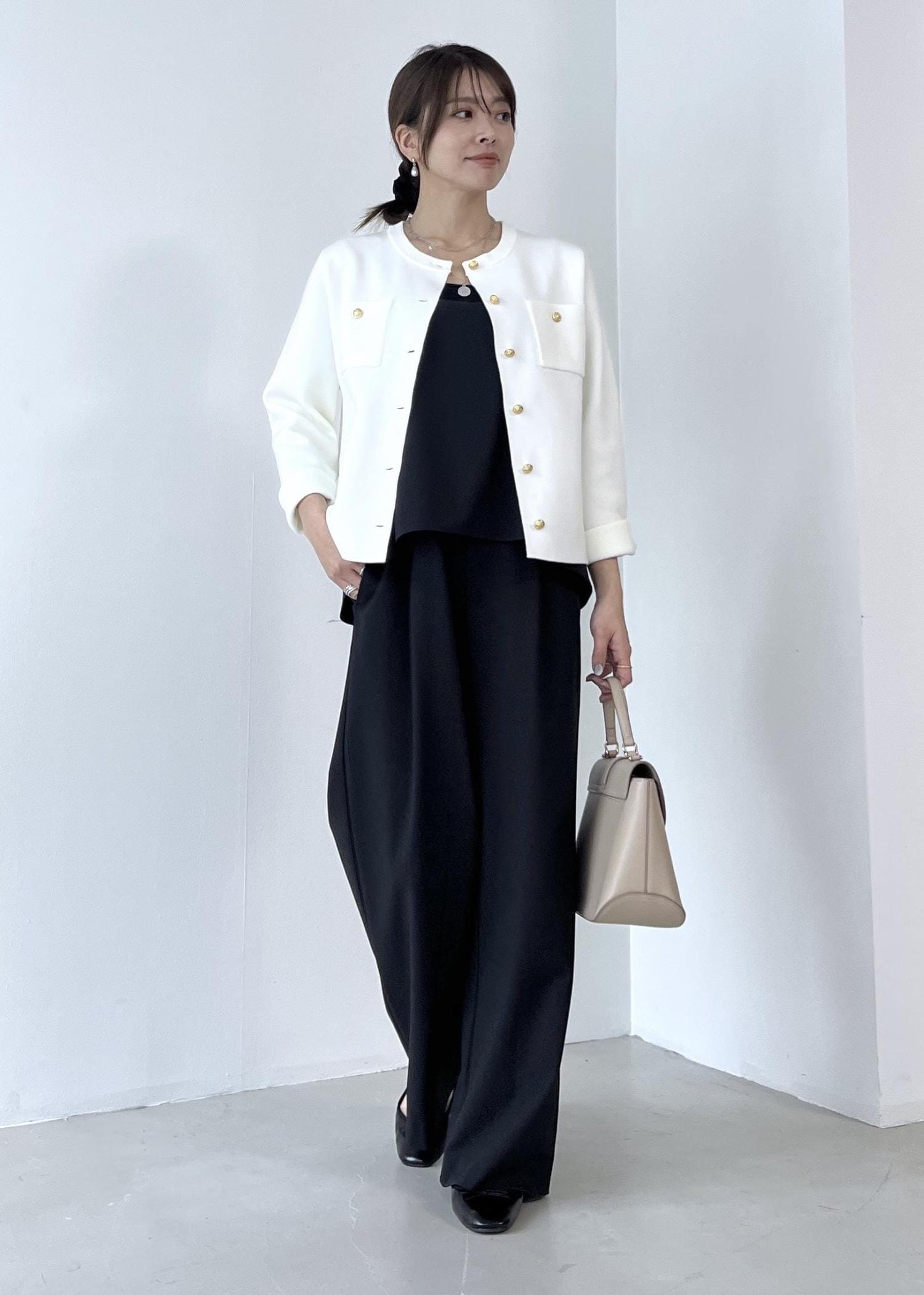 モノトーンでまとめて大人きれいめなコーデにしました。