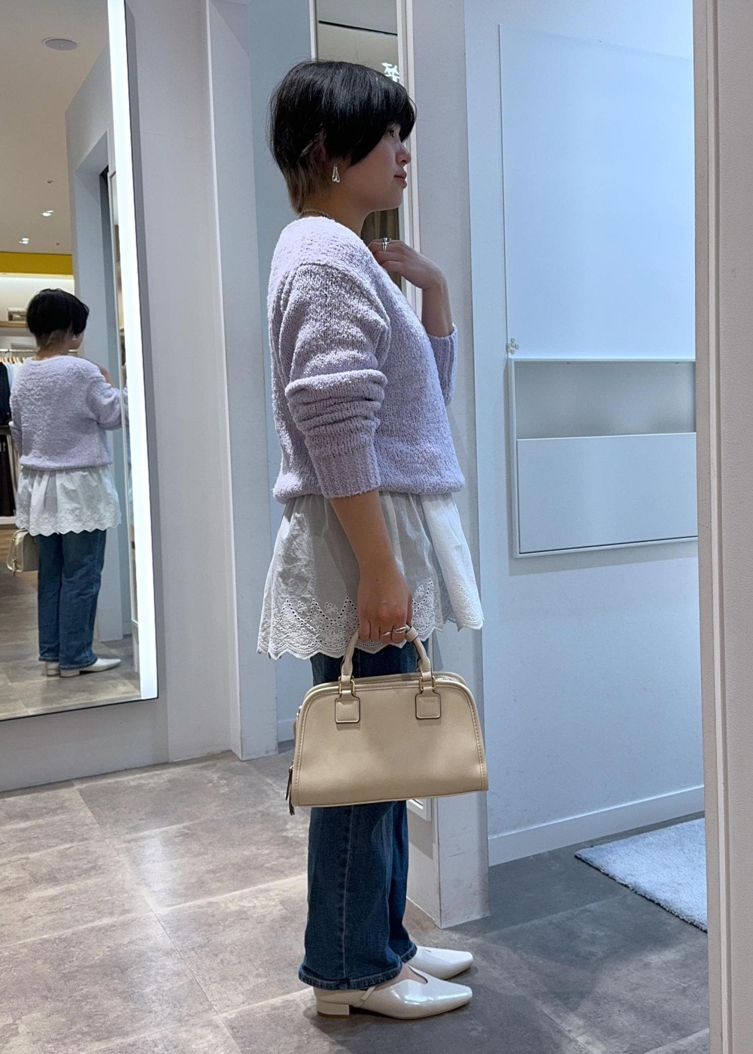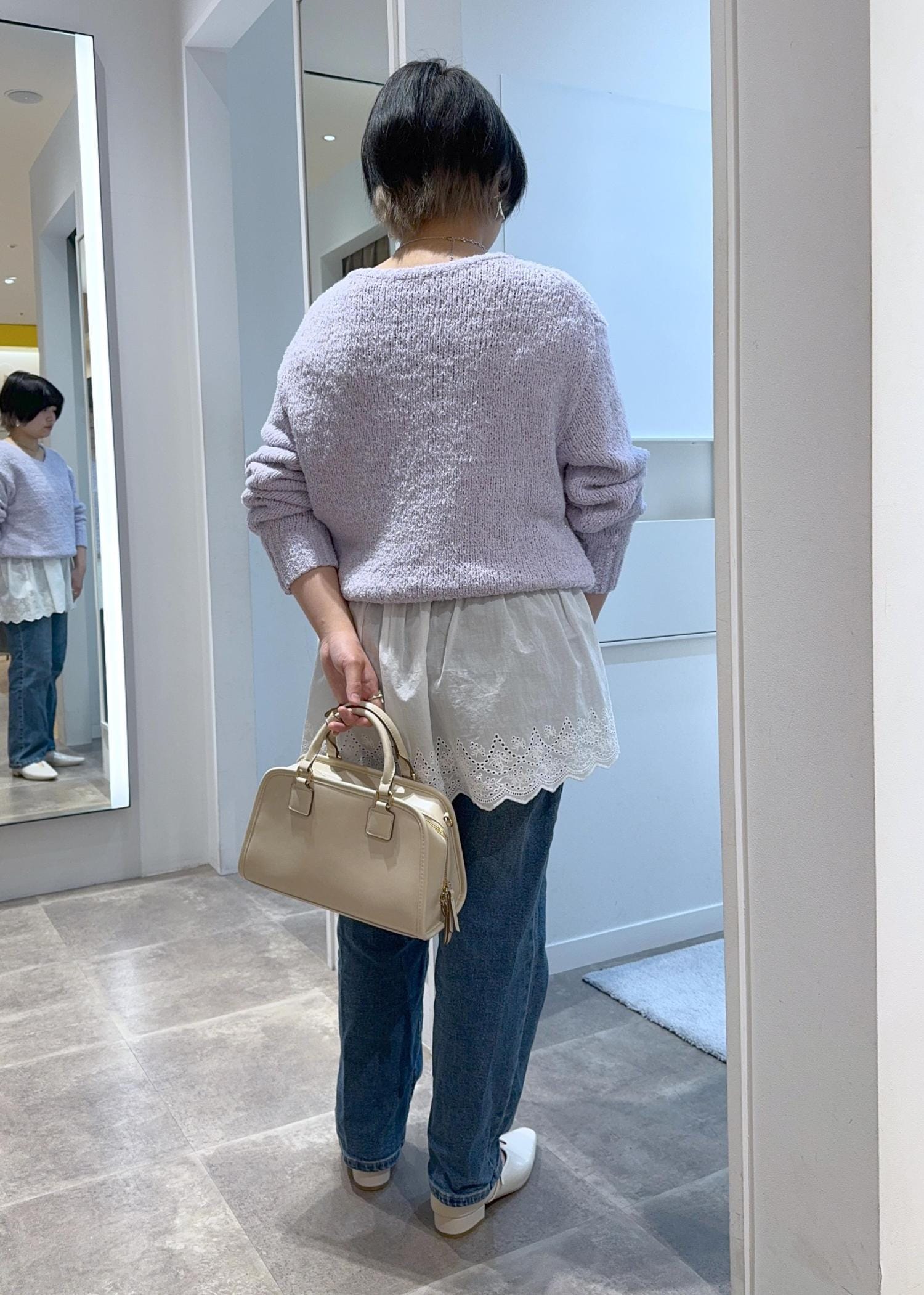 2BUY10%OFFROPÉ PICNICフリンジヤーンラメニットラベンダー / F¥4,391レビュー1枚でもシャツインでも着回しが効くニット。カラー物を着ない方でも挑戦しやすい優しい雰囲気のラベンダーです。