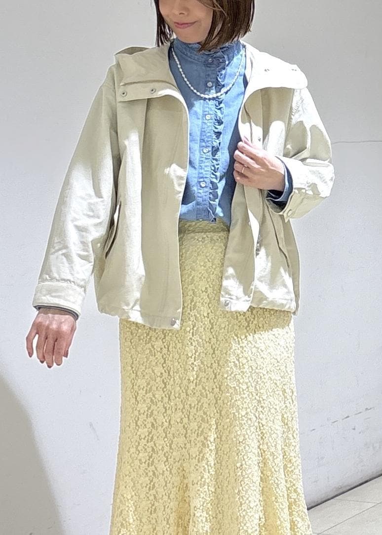 撥水加工されてるので梅雨時期までも着用できる素材感です。