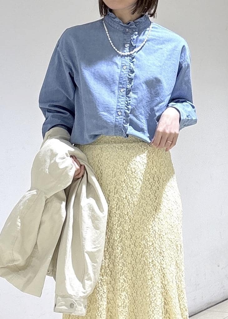 2BUY10%OFFROPÉ PICNICシャンブレーフリルシャツ/イージーケアサックス / F¥5,995レビュー柔らかなデニム素材でとても軽い着心地でした!透け感無く一枚でも着られます。