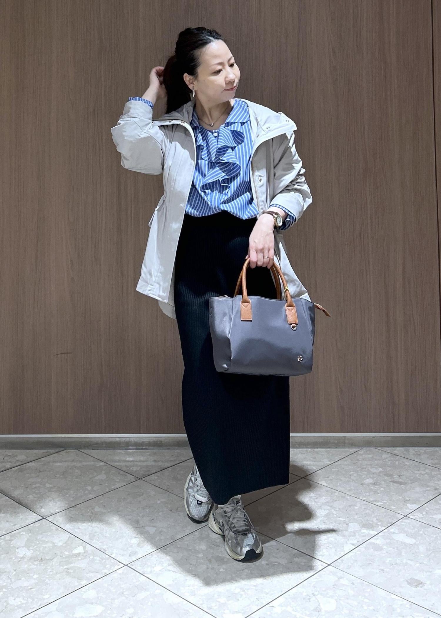 動きやすいので、軽めなアクティブなことやオフィスカジュアルでも使用できるスタイリングでもあります。