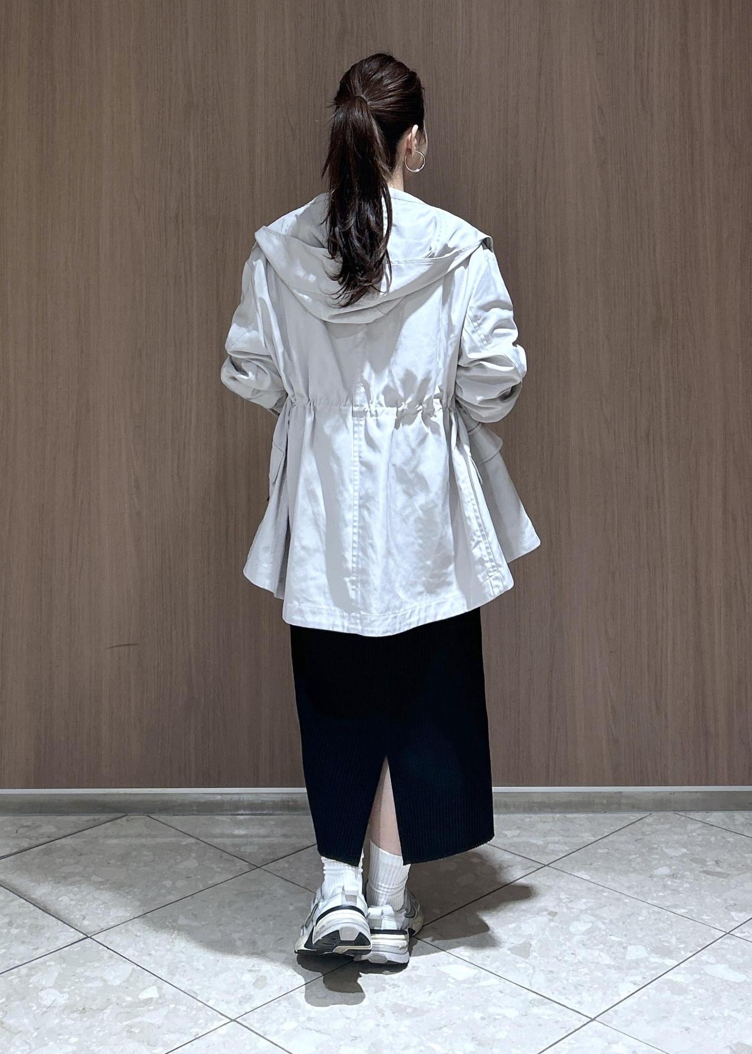ROPÉ PICNICミドル丈マウンテンパーカー スプリングコート/花粉ガード・撥水ライトグレー / F¥13,200レビューウエスト部分にドロストがついていることで、ウエストラインを出すことができます。ミドル丈ですが、ボトムスのシルエットによってドロストすることでバランスよく着こなすことができます。