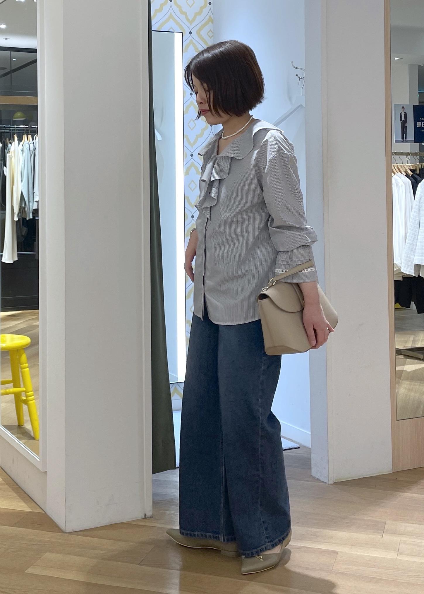 ラッフルブラウスのデニムコーデ