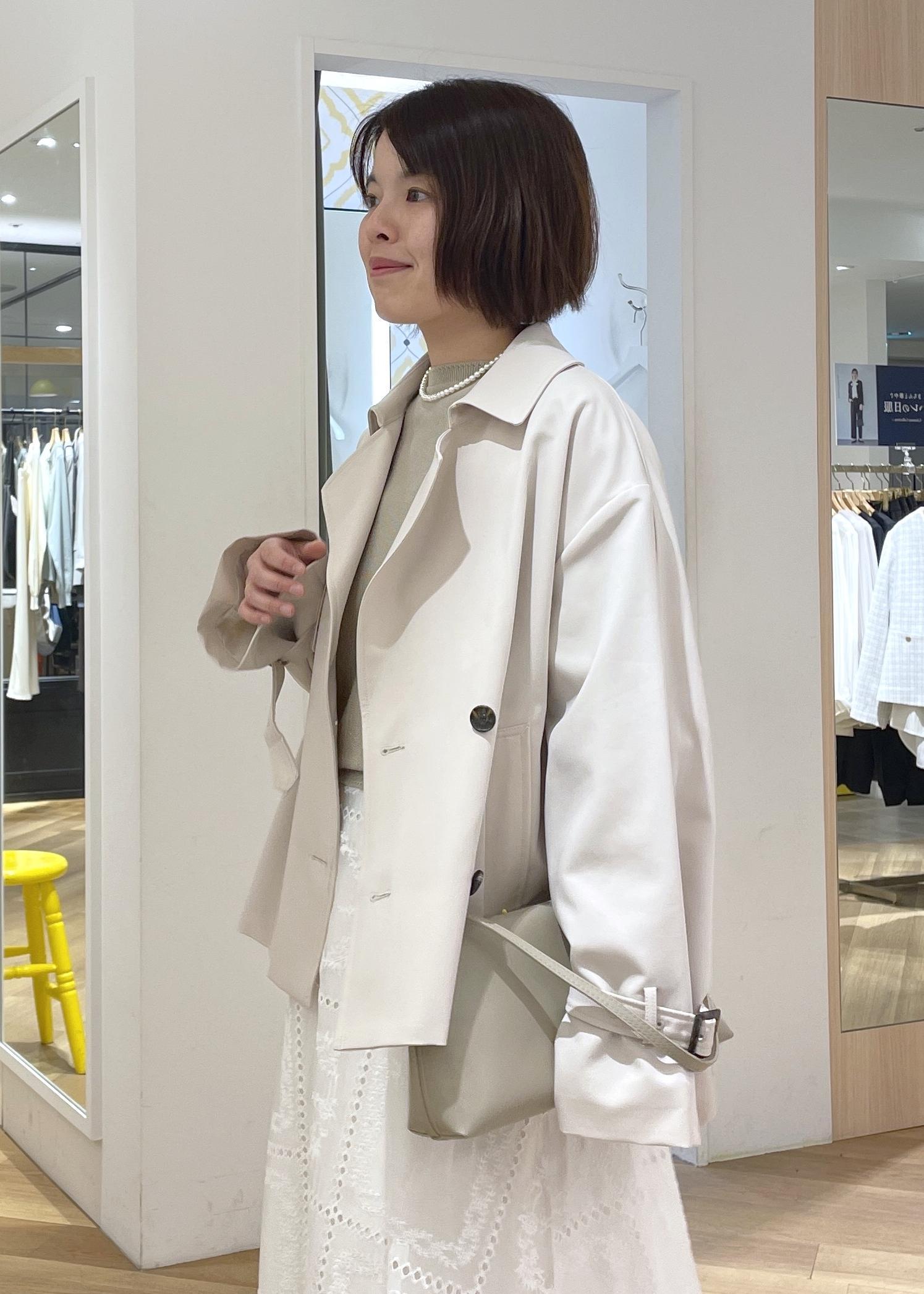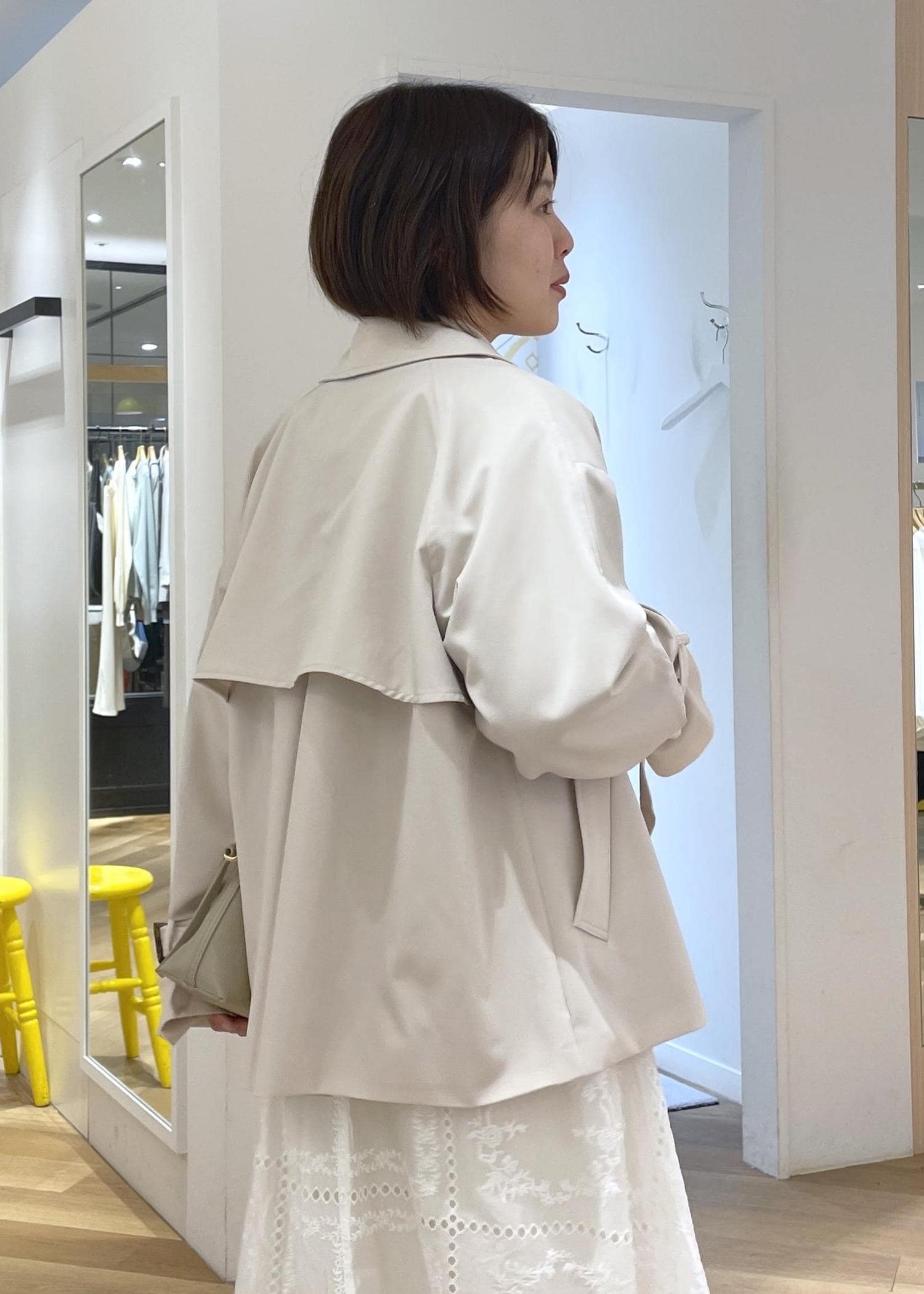 2BUY10%OFFROPÉ PICNICショート丈トレンチコート/撥水・花粉ガードベージュ / F¥13,200レビュー柔らかな素材感で羽織心地の良いショートトレンチコートです。身頃はゆったりとしており、厚手のトップスの上からでもごわつかず羽織やすいです。撥水加工や花粉ガードなど春に嬉しい機能性素材です。