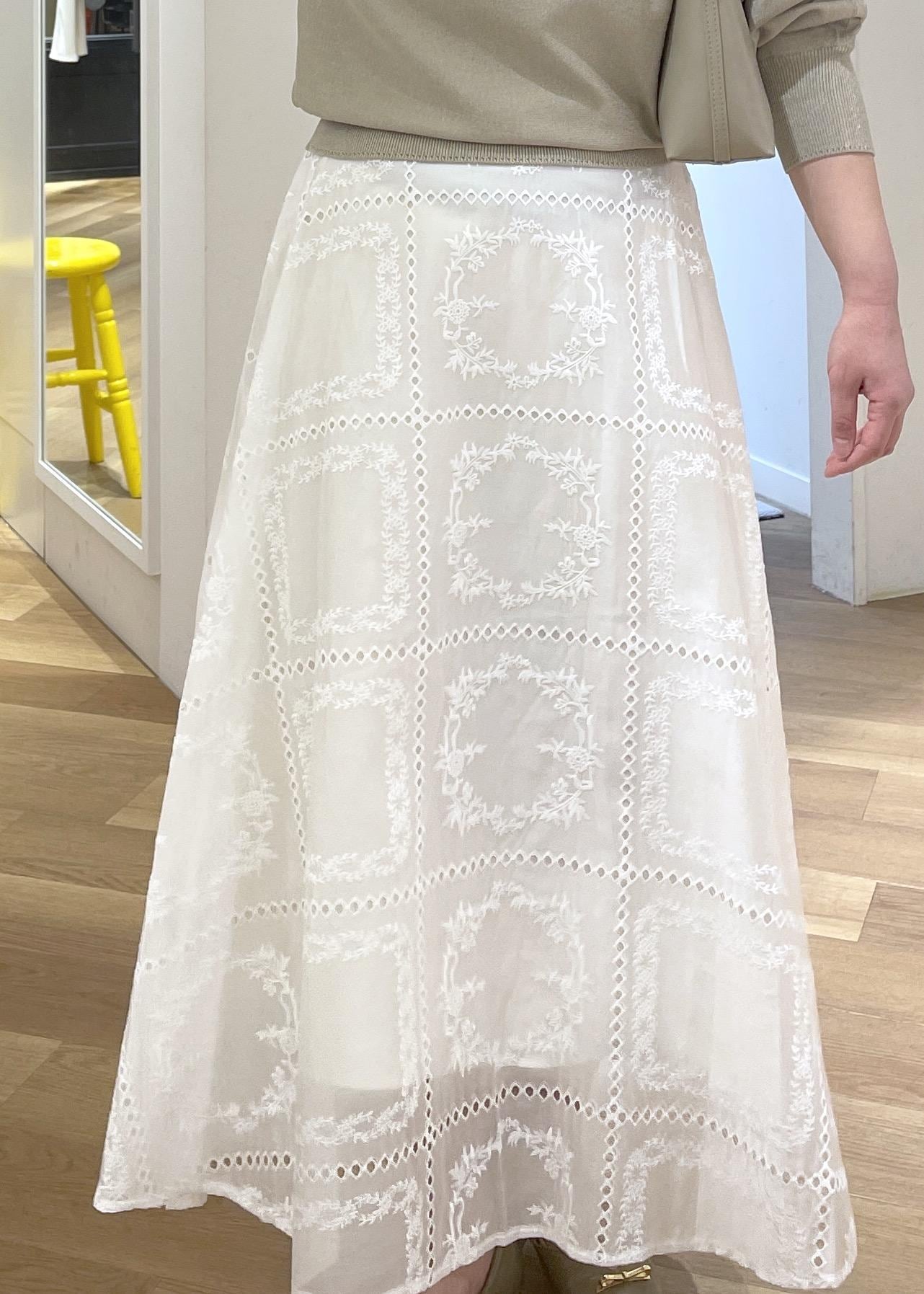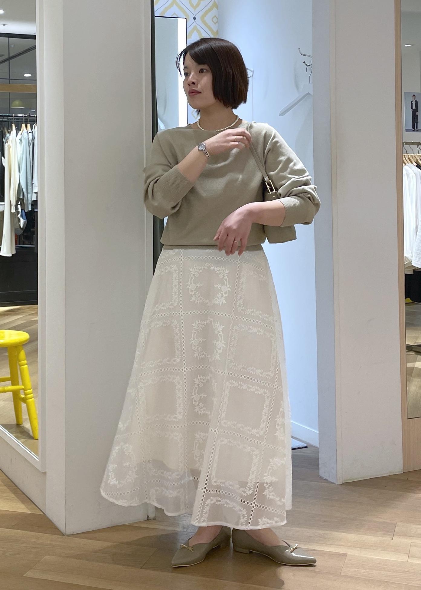 2BUY10%OFFROPÉ PICNIC刺繍レースフレアスカートホワイト / F¥7,491レビュー軽やかな風合いで、ボリューム感のあるシルエットのスカートです。ウエストはゴム仕様でリラックス感ある履き心地です。160cmで着丈は足首が出るくらいの長さです。