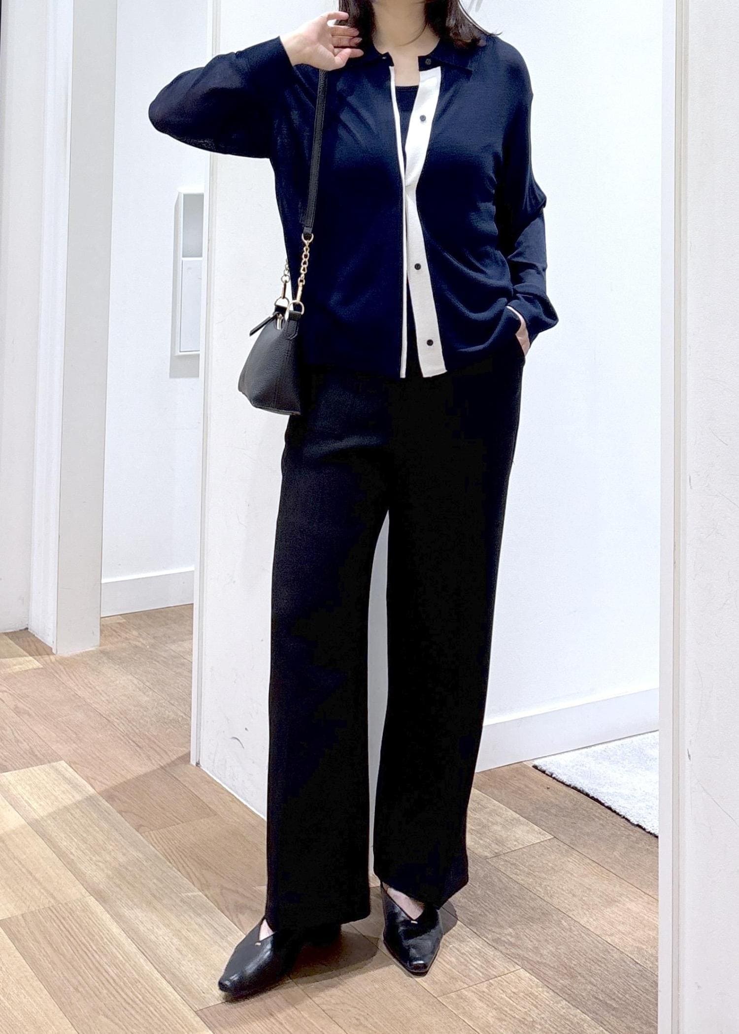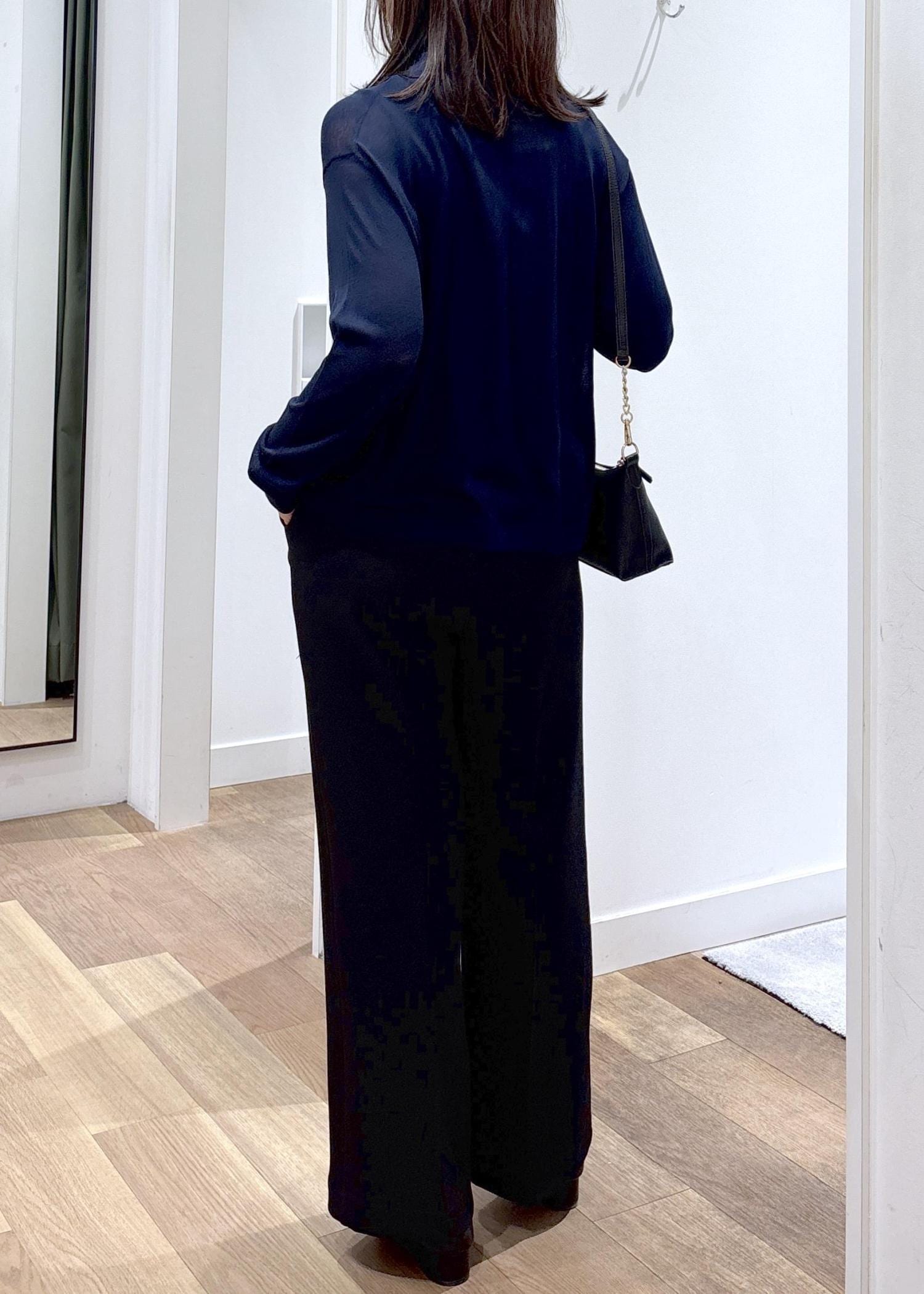 カーディガンはほんのり透け感があるシアーな素材なので