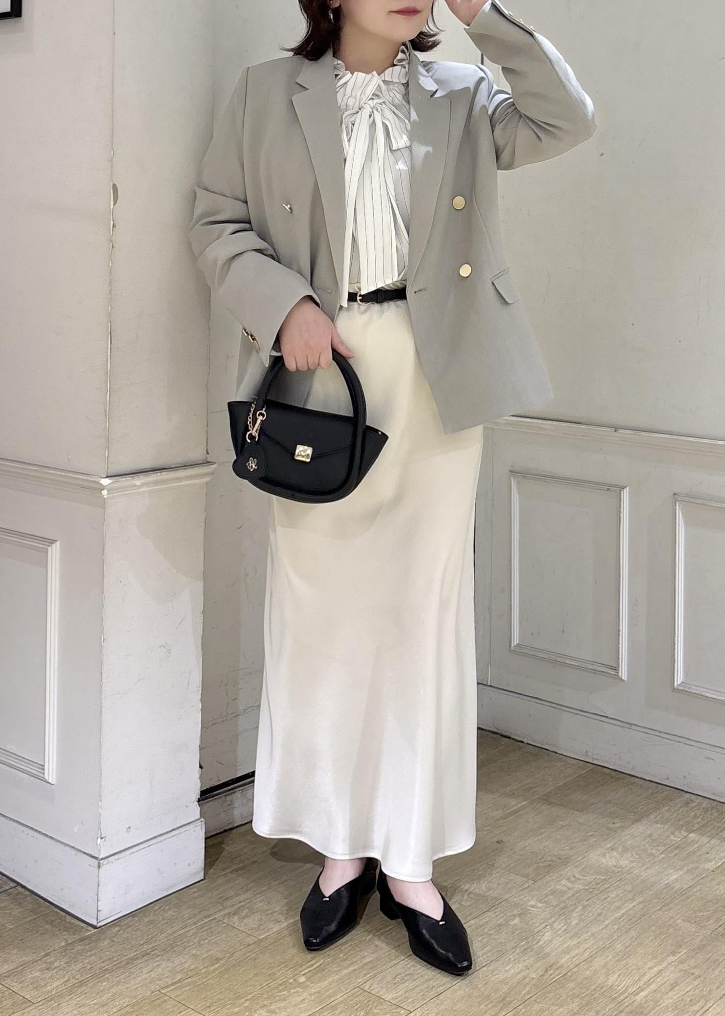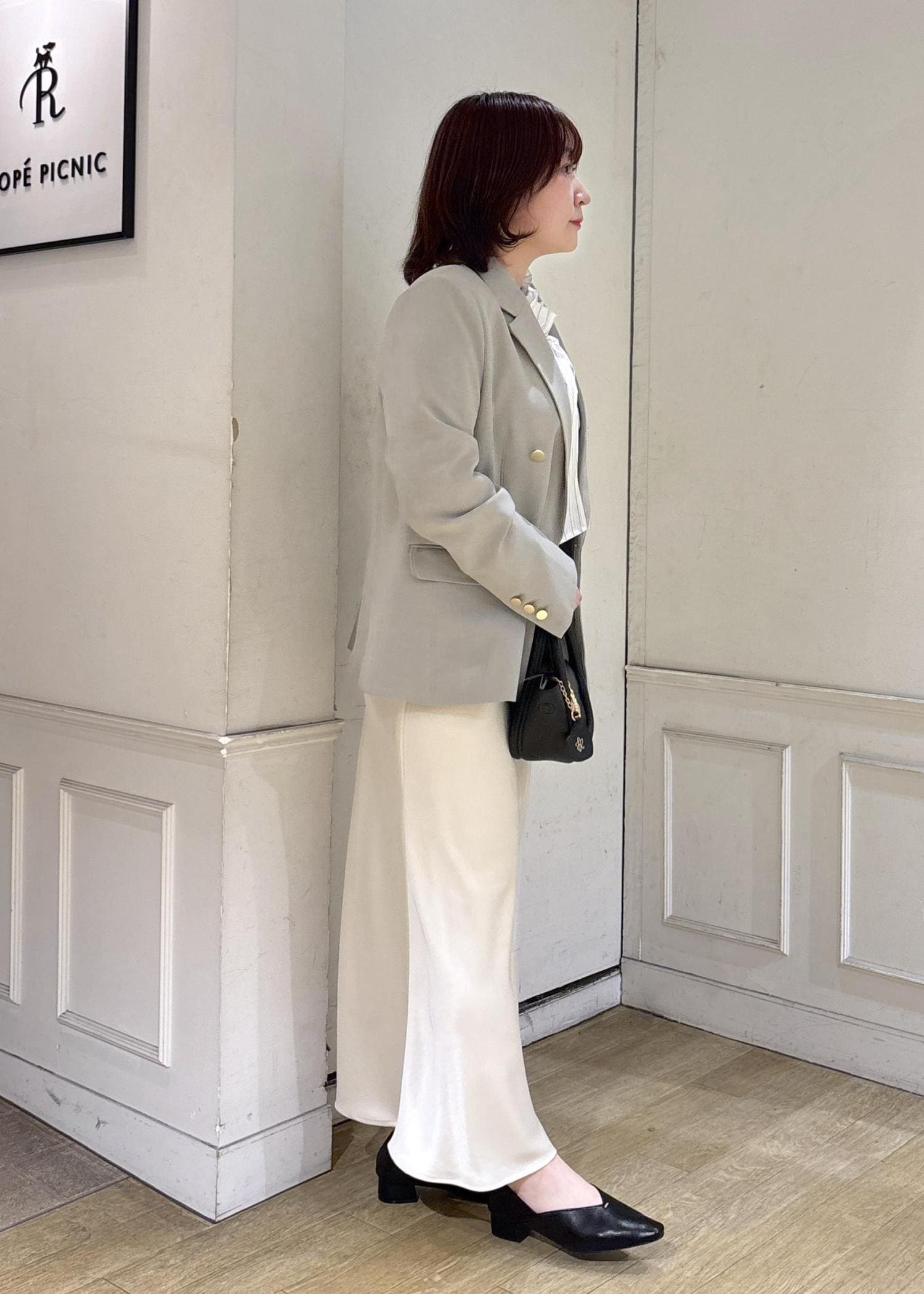 ROPÉ PICNIC細見えバイアスサテンスカート/イージーケアオフホワイト / F¥6,490レビュー普段Mサイズ着用。丈は足首が隠れるくらいです。ウエストが総ゴムになっているので安心して履けます。サテン素材で程よい光沢感がキレイめ見えします。綺麗なラインなのでスッキリ見えます。