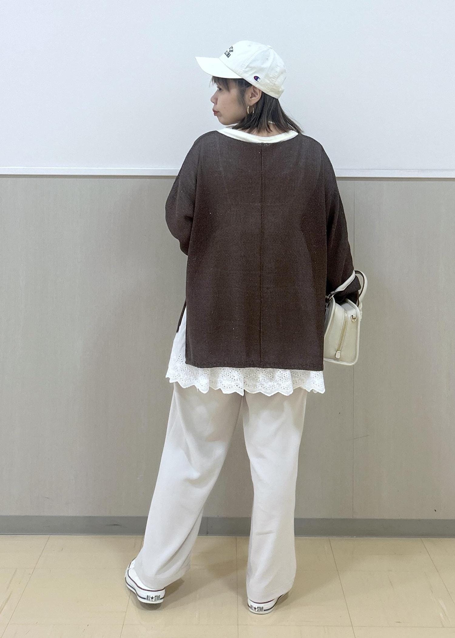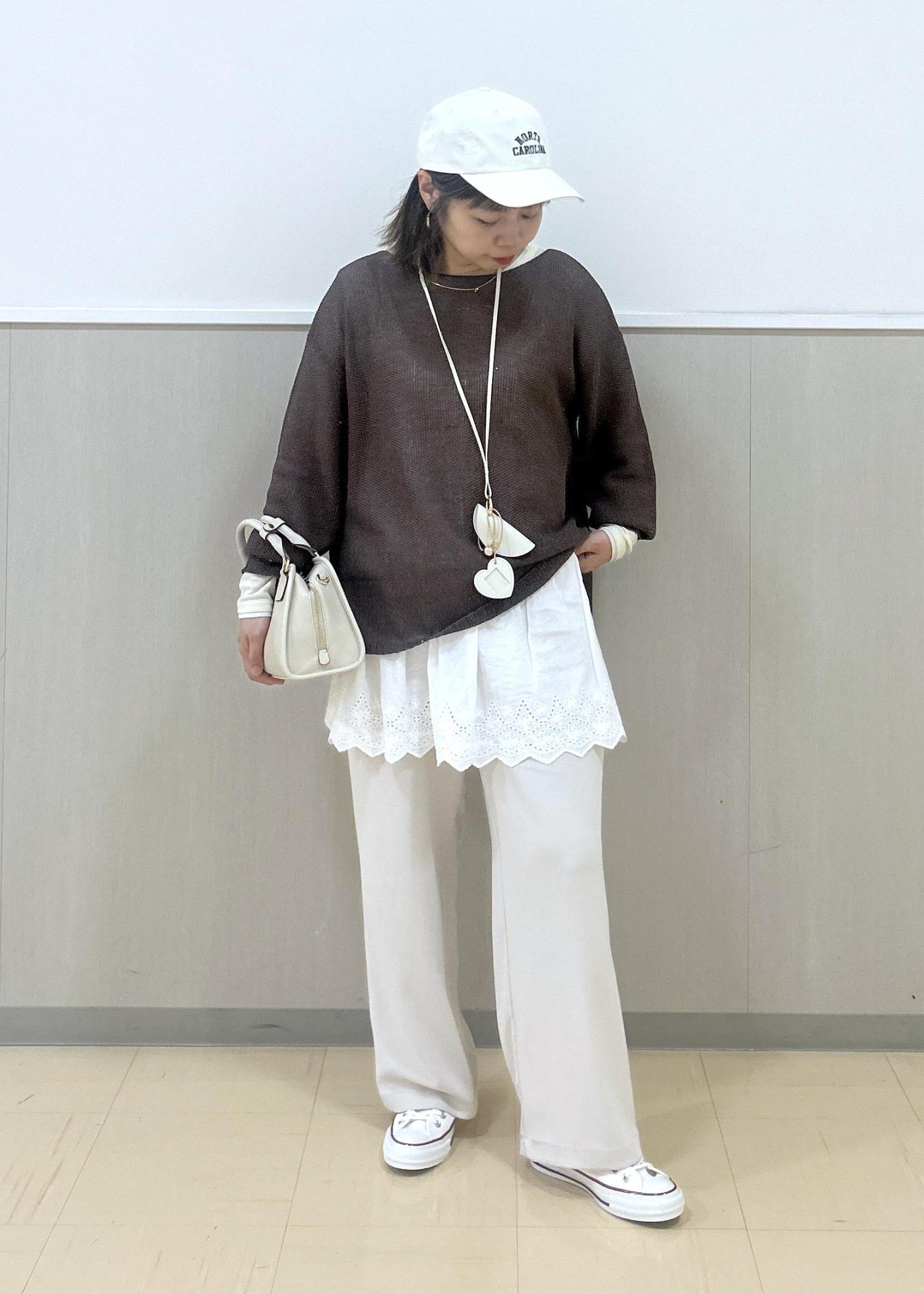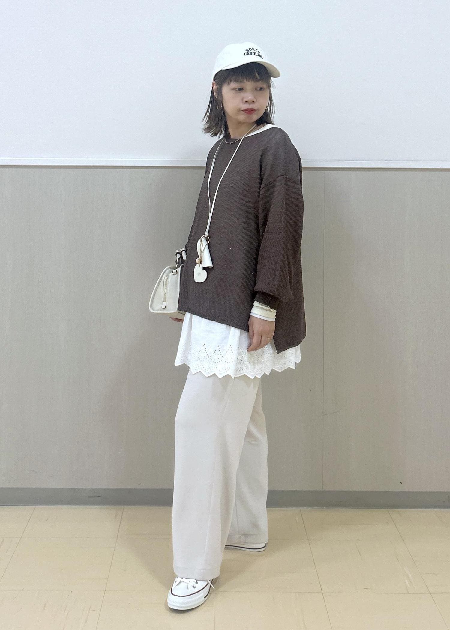 寒い日は上からニットやスウェットを着て、下からレースを出すとオシャレです!
